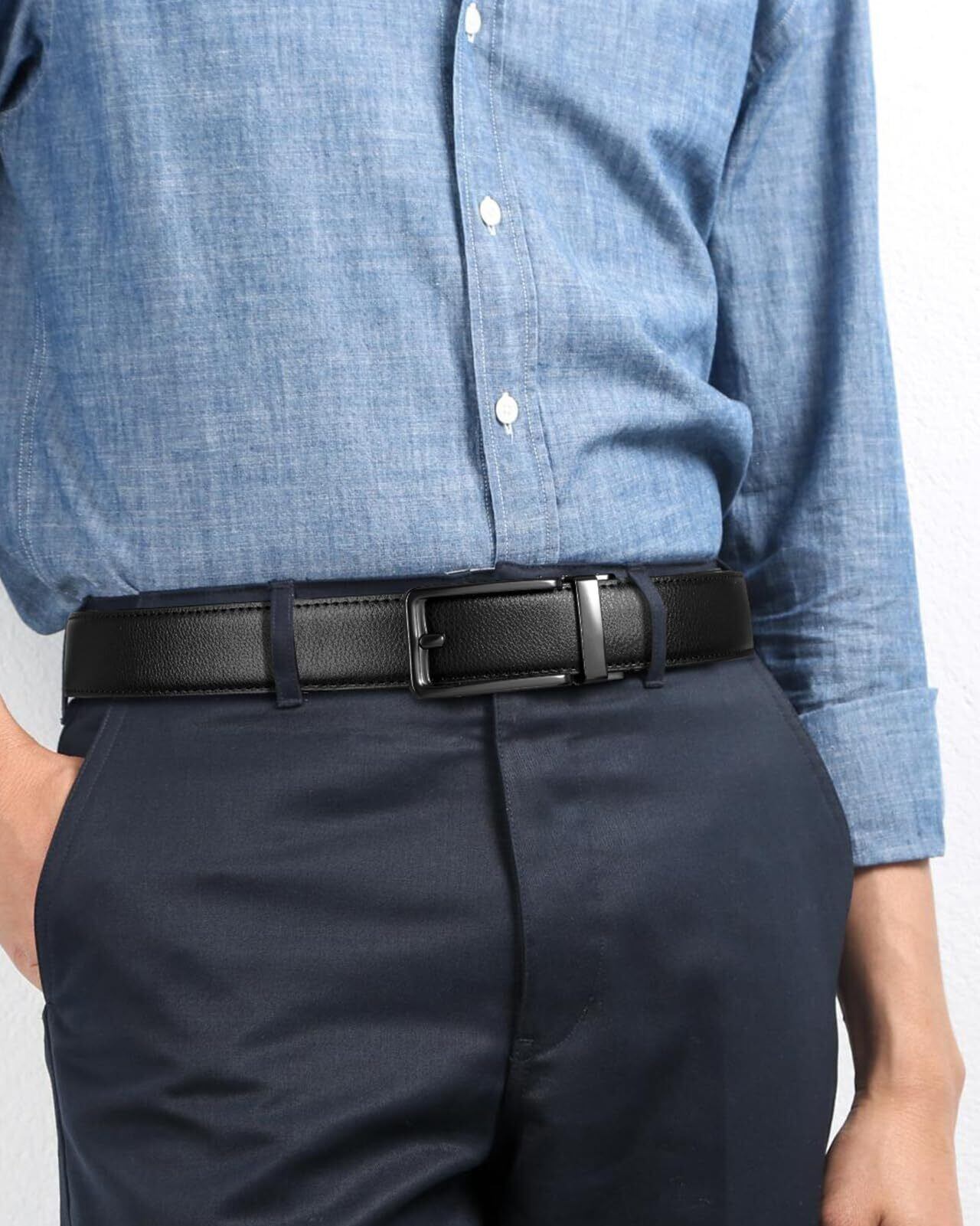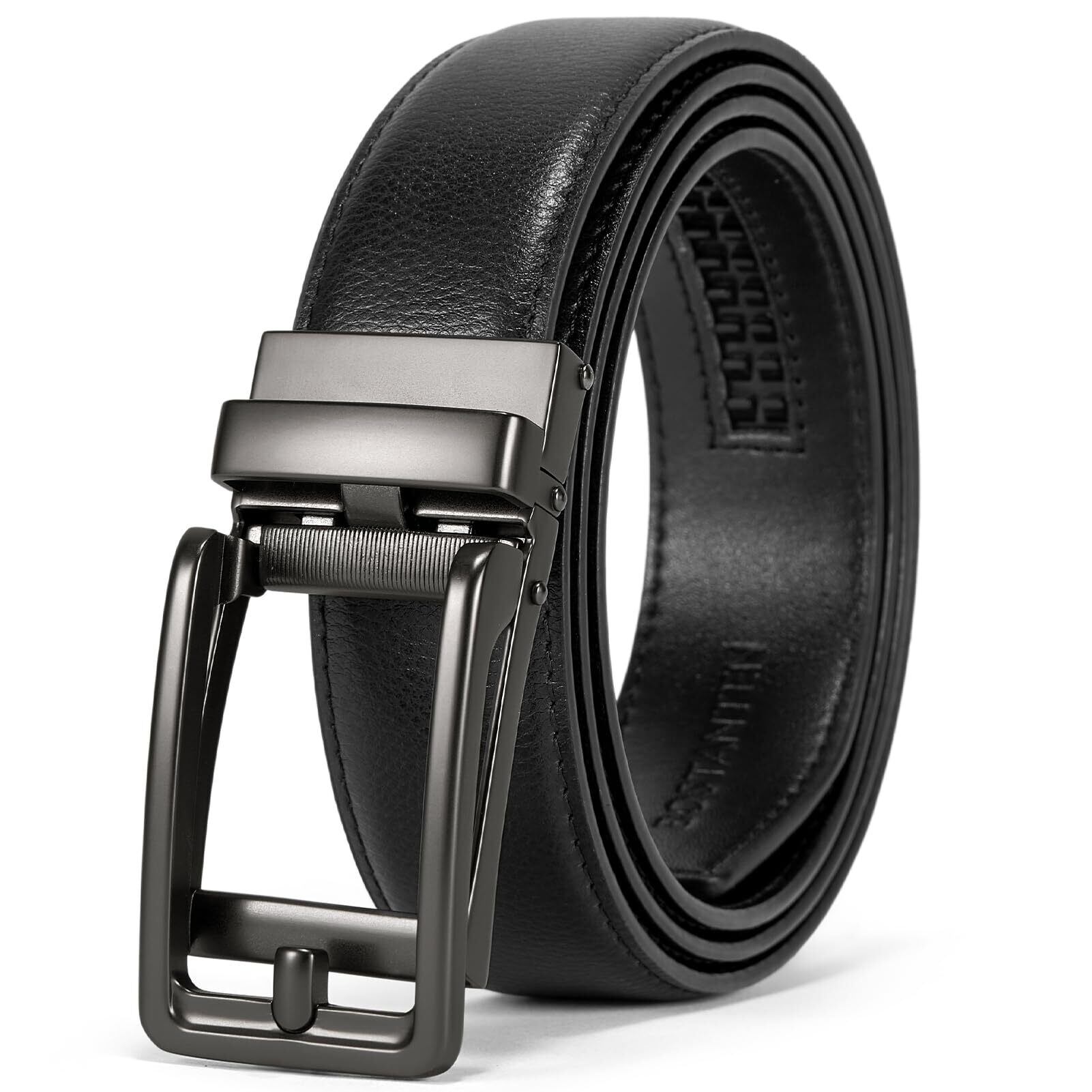 [BOSTANTEN] ボスタンテン ベルト メンズ 本革 ビジネス オートロック式 おおきいサイズ 紳士用ベルト 本革 オートロック式 穴なし (ブラック-3031K, 115cm)