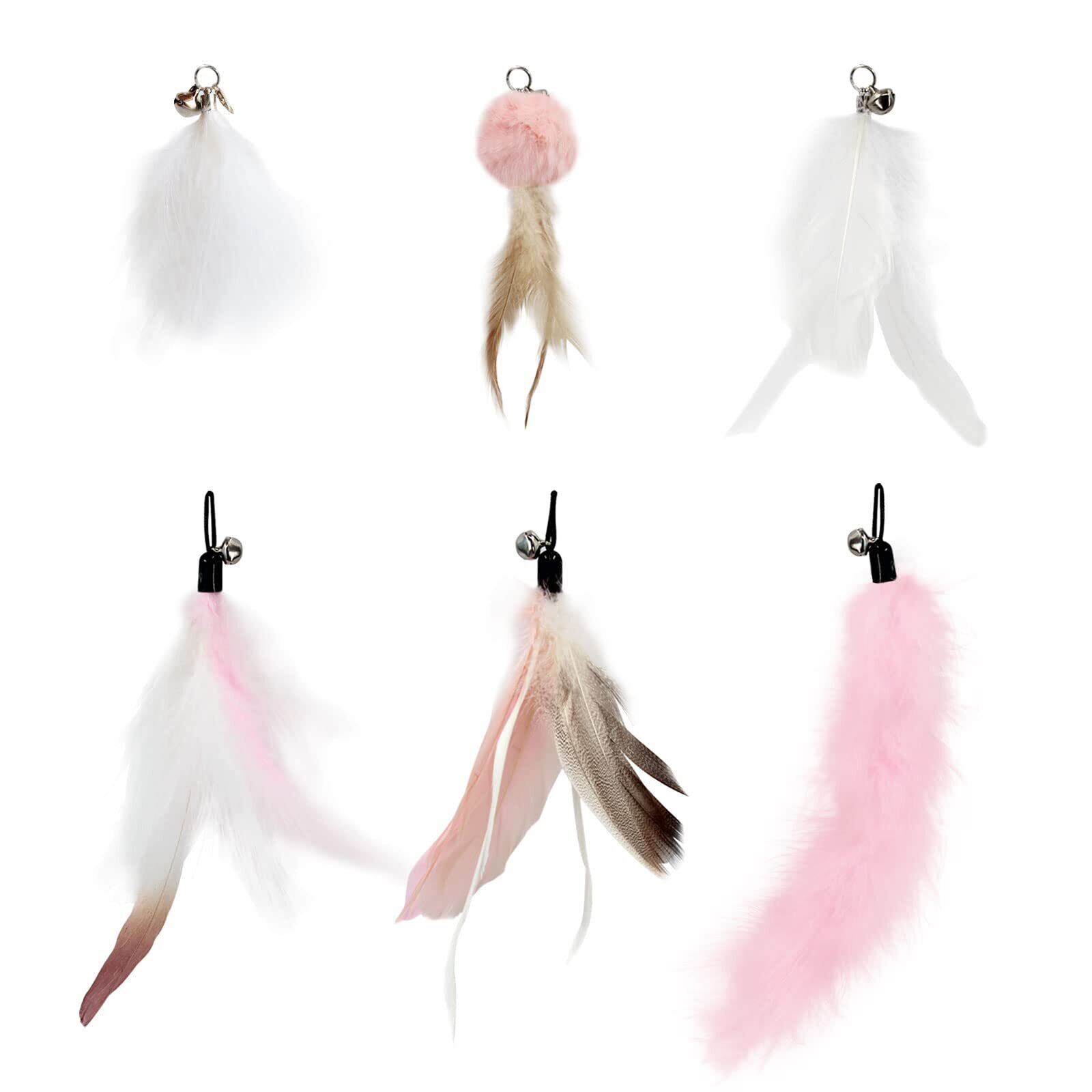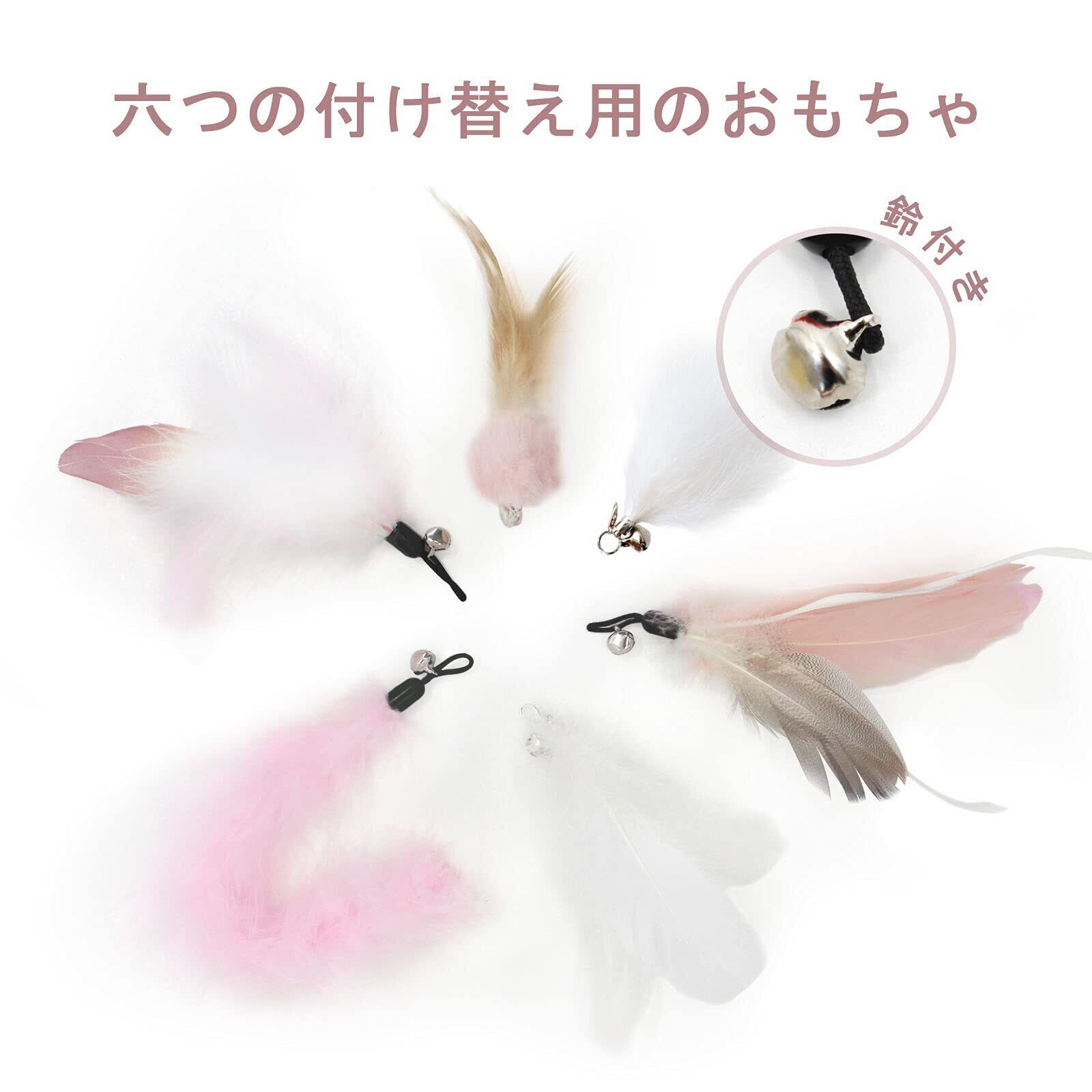 SONGWAY 猫おもちゃ 猫じゃらし 6点セット 猫用おもちゃ羽根 鈴付き 猫ストレス解消おもちゃ 人気 ピンク羽単品