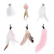 安全安心に遊べる天然鳥の羽根(6羽):ねこじゃらしの先端につけるおもちゃは6天然羽根、楽に交換できる羽単品のおもちゃ(羽のおもちゃ6セット)釣り竿なし。