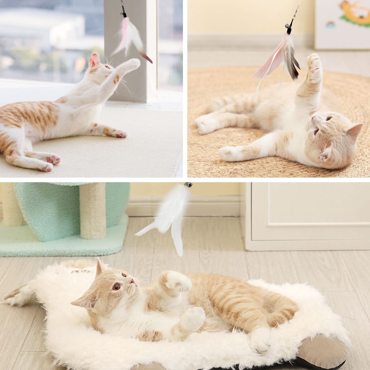 【多様な遊び方を楽しめる】このセットには、キャッチしたり追いかけたりするのに最適な猫じゃらしが含まれています。愛猫はもちろん、飼い主との絆を深める遊び時間を楽しむことができます。お部屋の中でも手軽に遊べるアイテムです。