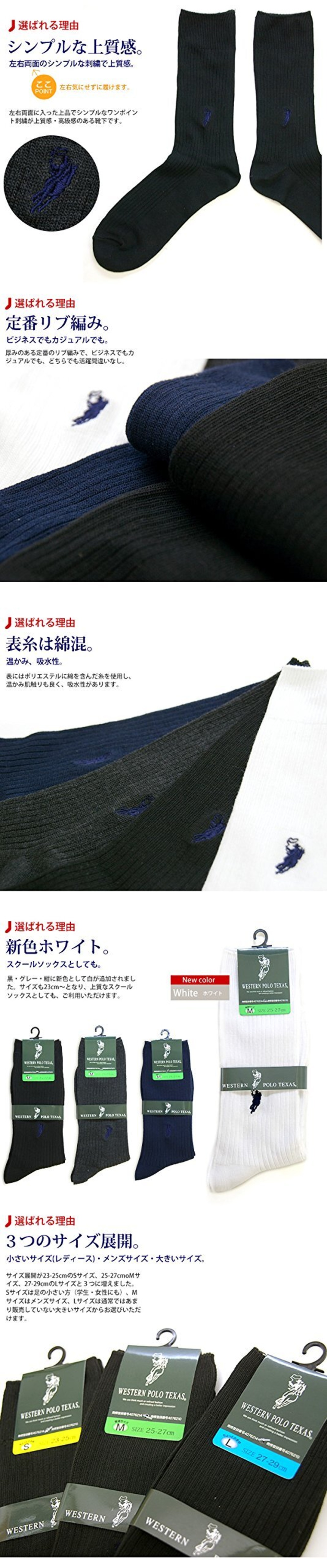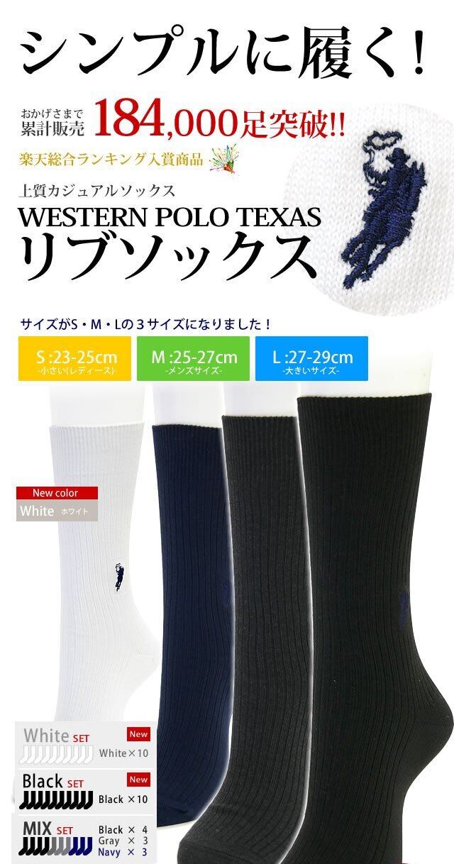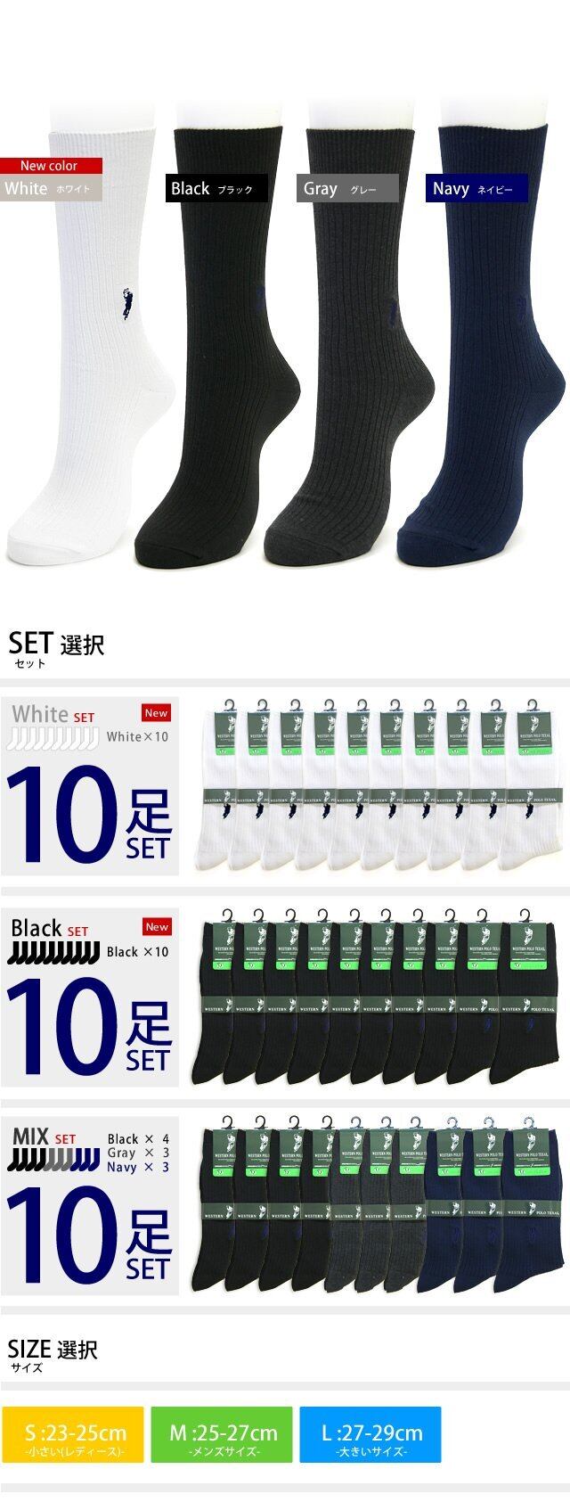 【2022最新】癒足(いやし) [癒足] ポロ 靴下 ビジネスソックス WESTERN POLO TEXAS® 両面刺繍 リブソックス 10足セット 紳士 メンズ