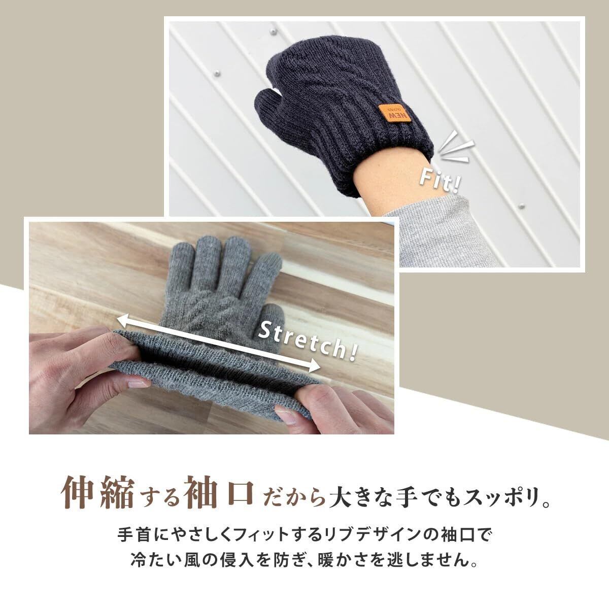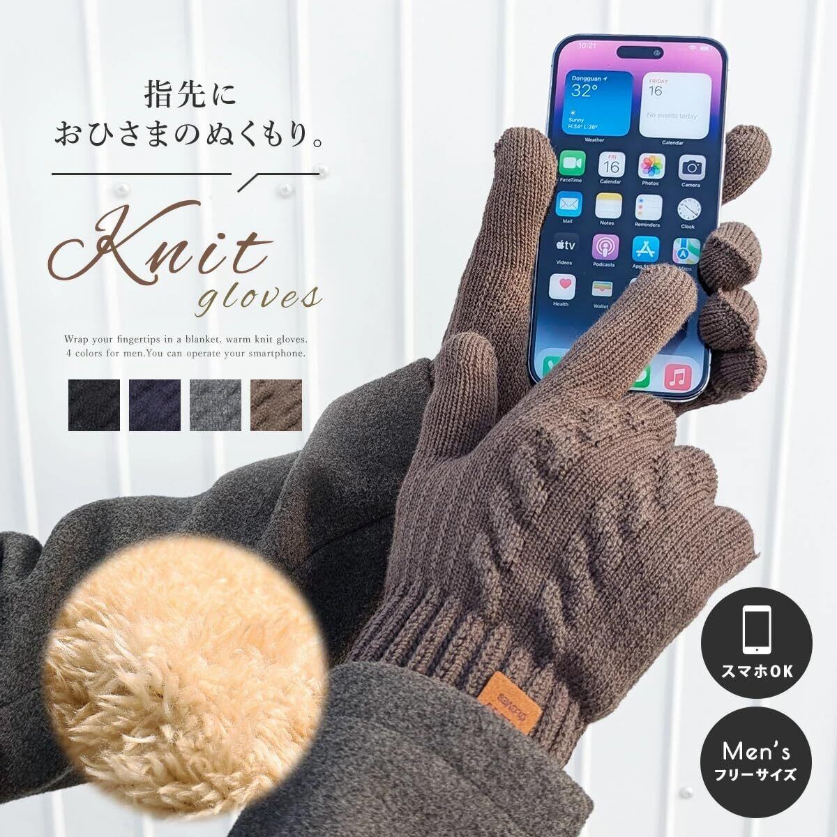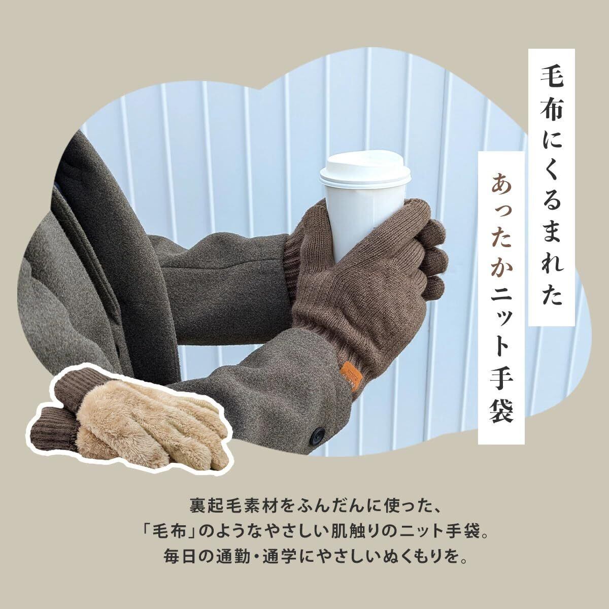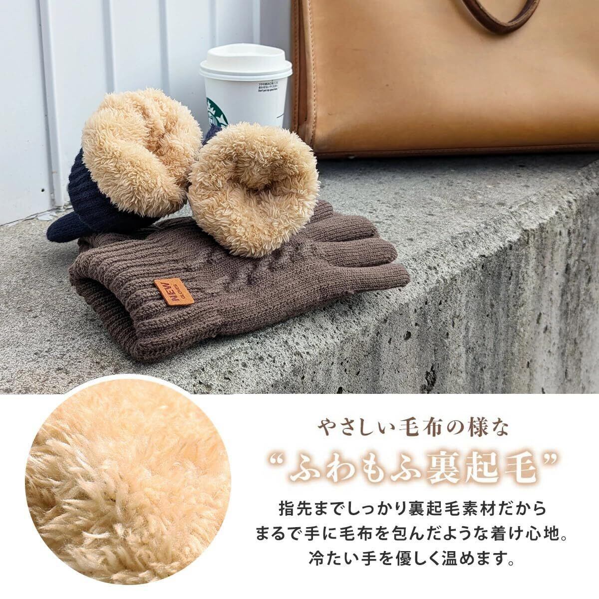 [MEURTE] 手袋 メンズ 冬 防寒 ニットグローブ スマホ対応【裏起毛・瞬間で5℃上昇・零下防寒・伸縮性】 二重構造でぽかぽか 防寒グローブ 厚手 ニット手袋 保温 てぶくろ