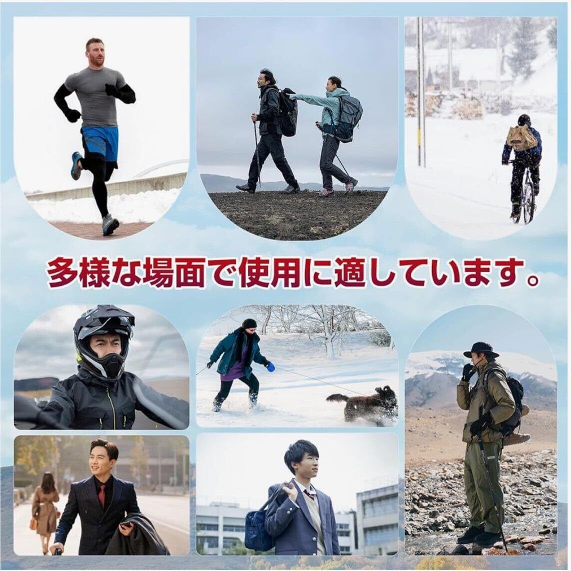 【多用途シーン】防寒性と機能性を兼ね備え、登山、バイク、自転車通勤、通学、雪かき、冬季作業など、様々なアウトドアシーンや日常生活で活躍。1足で幅広いニーズに対応します。