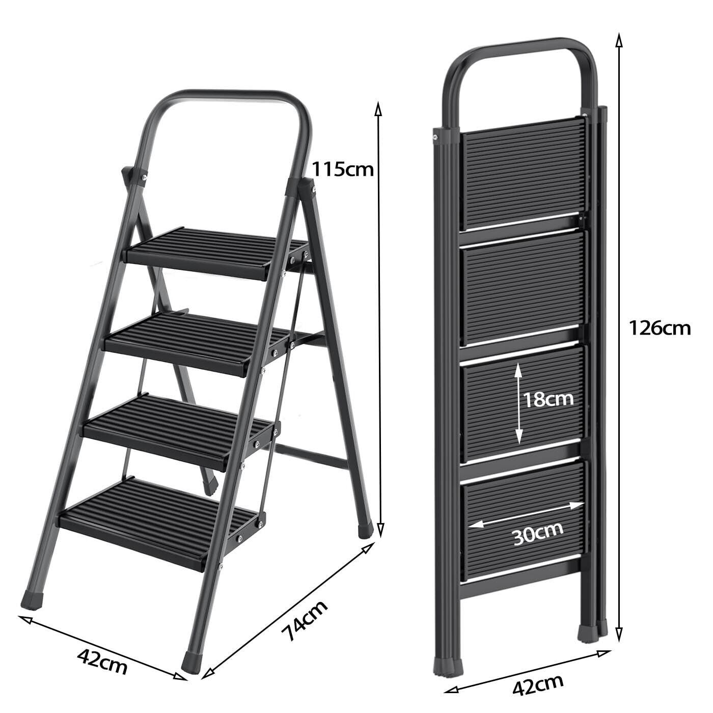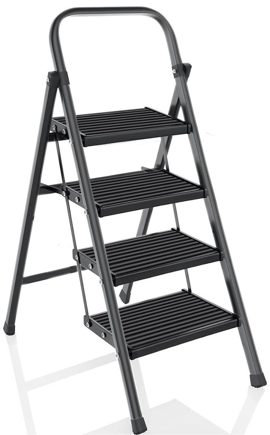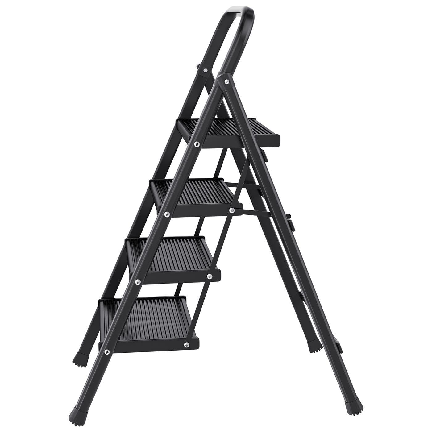 【新春セール】脚立 踏み台 折りたたみ 4段 アルミ製ステップ 手すり付き脚立 おしゃれ ステップ台 スツール キャタツ はしご 梯子 室内 屋外 step ladder ハシゴ 軽量 コンパクト 安全 折り畳み 耐荷重150KG 黒 ブラック (4 段)