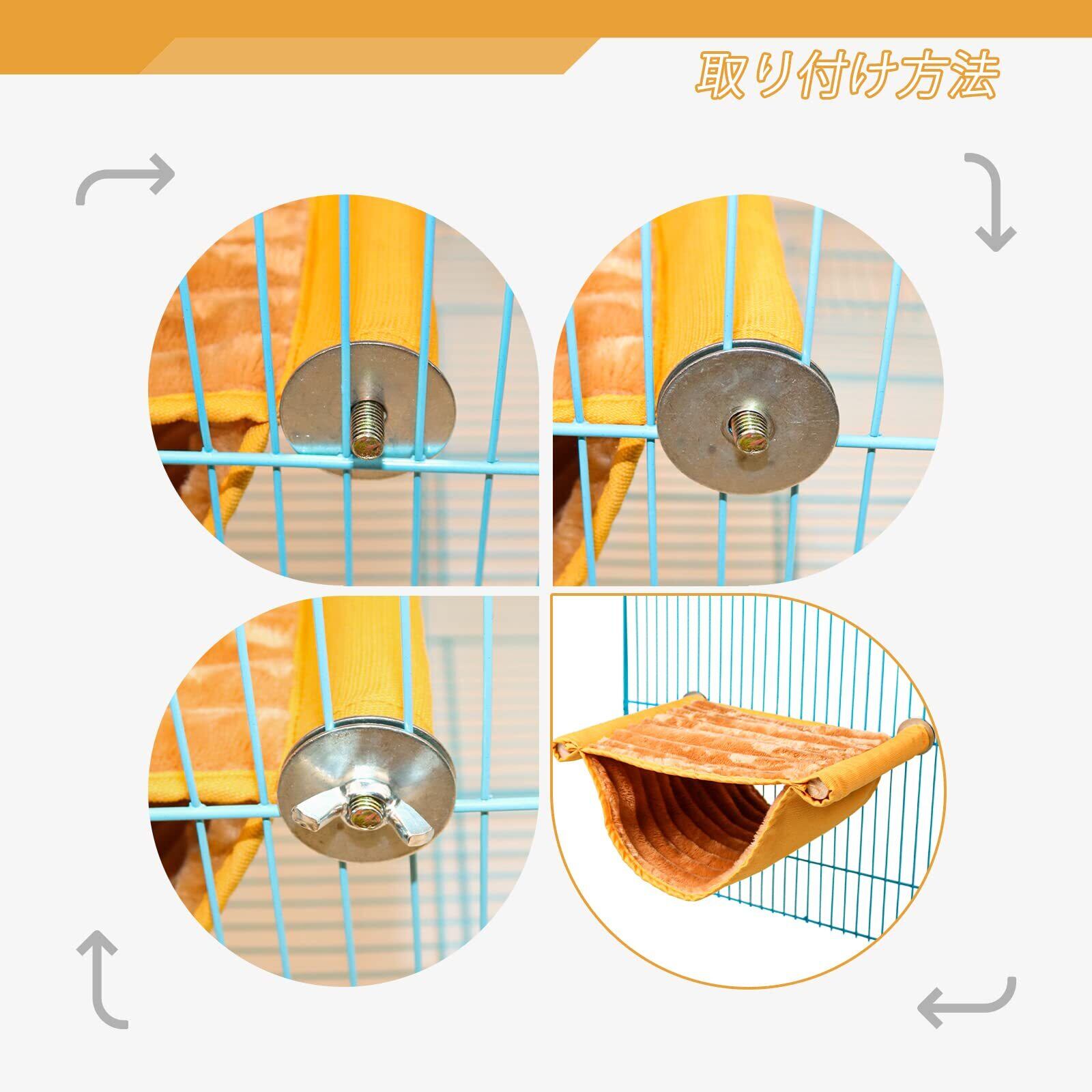 【簡単な取り付けとお手入れ】このハンモックは取り付けが簡単で、飼育ケージの内部にしっかりと固定することができます。また、汚れた場合は洗濯機での洗濯も可能で、常に清潔な環境を維持できます。忙しいお客様にもぴったりな便利なアイテムです。