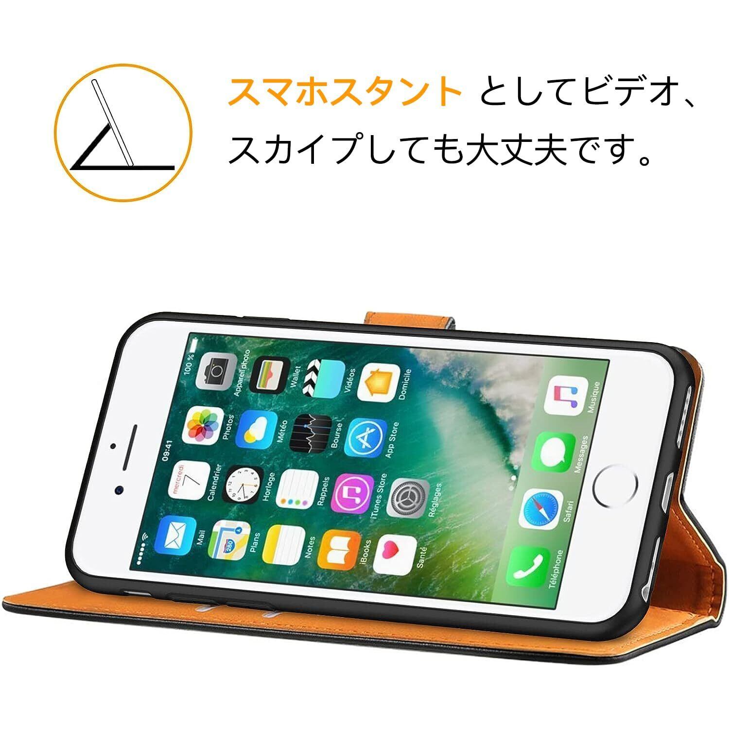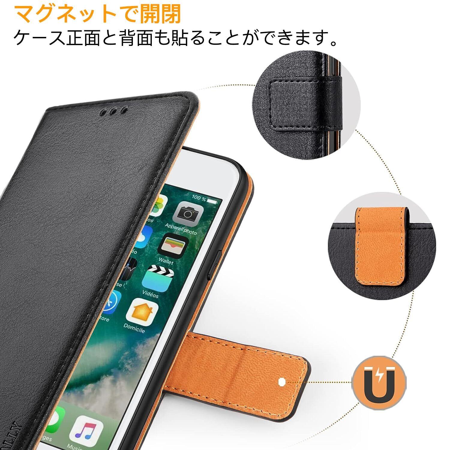 Peakally iPhone SE ケース 手帳型 iPhone se3/ iPhone se2/iPhone8/iPhone7/iPhone6s/6 手帳型スマホケース カード収納 財布型ケース 高級PUレザー マグネット式 スタンド機能 360度保護 耐衝撃 (ブラック)