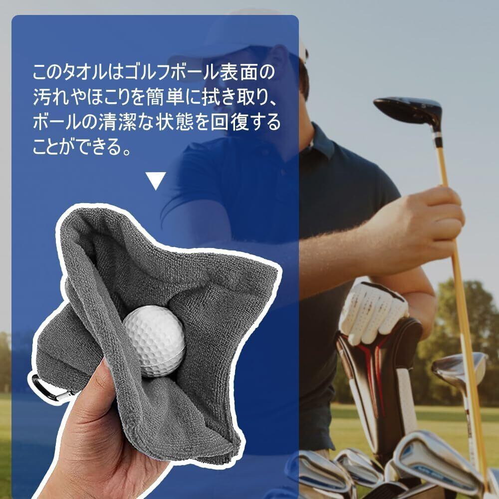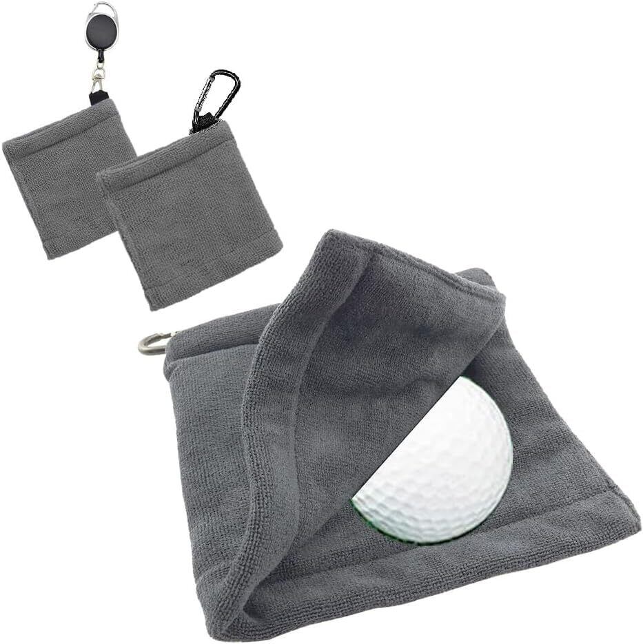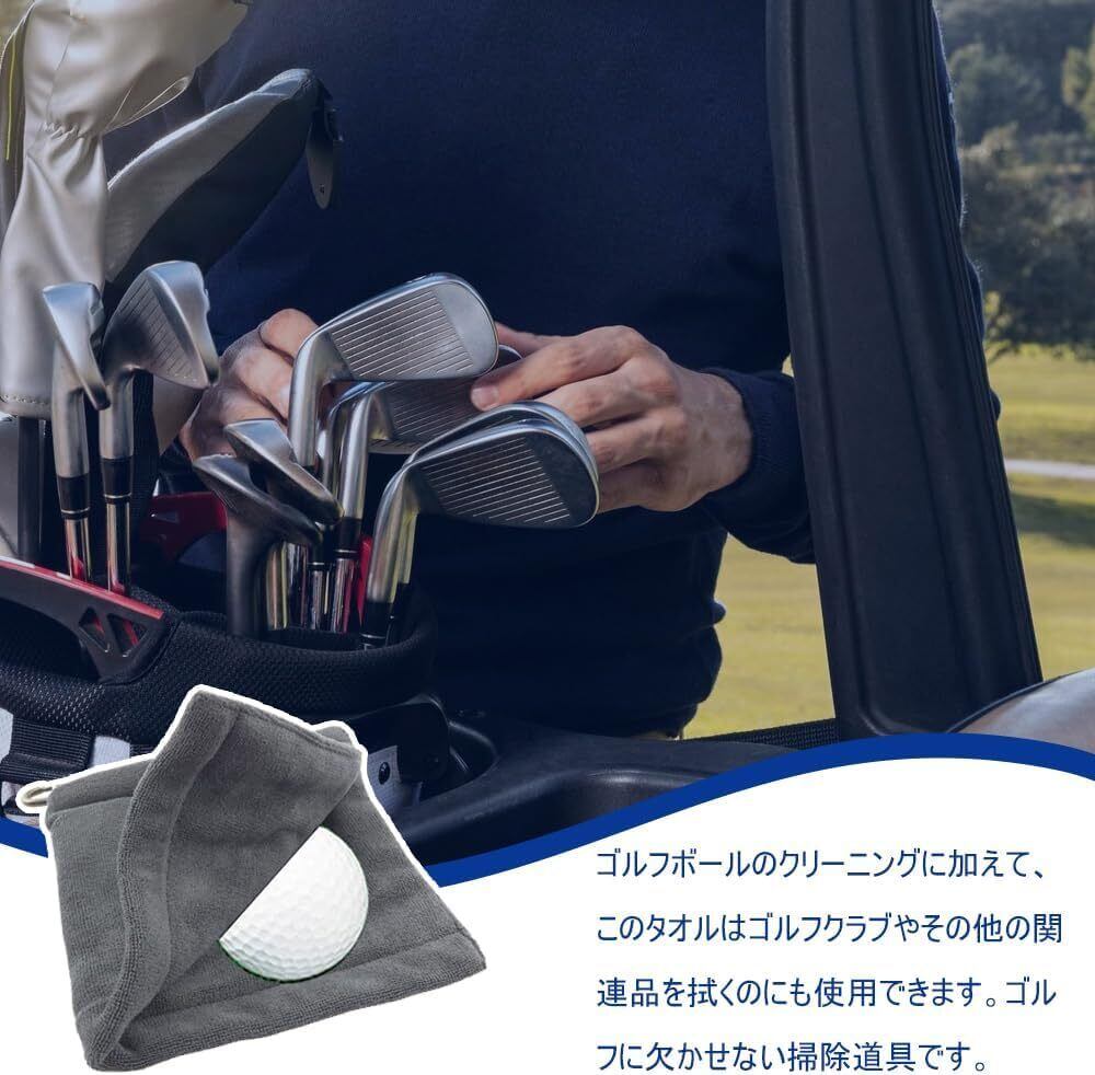 ゴルフボールクリーナー ゴルフボールクリーニングタオル ゴルフタオル拭き ゴルフクラブタオル ゴルフ用清潔具 カラビナ付き キーホルダーバックル ボール拭き 清潔用 マイクロファイバー タオル 防水 便利 ゴルフクリーニング用 12*12cm 2個入り (グレイ++グレイ)