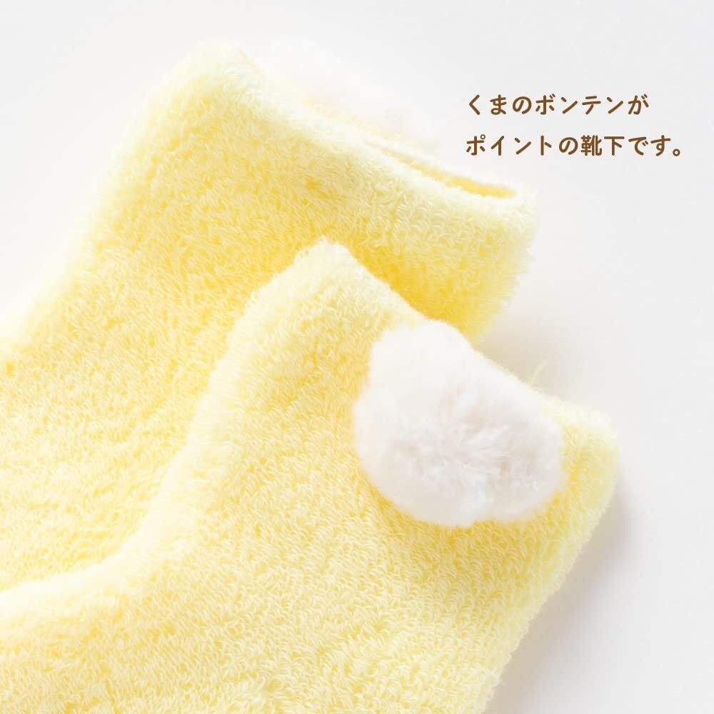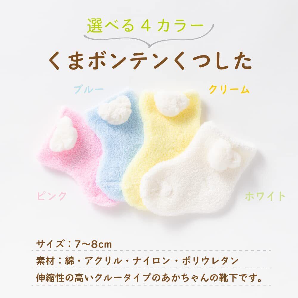 ●新生児用の伸縮性の高いソックス。●クマの形のかわいいボンテンがワンポイント。
