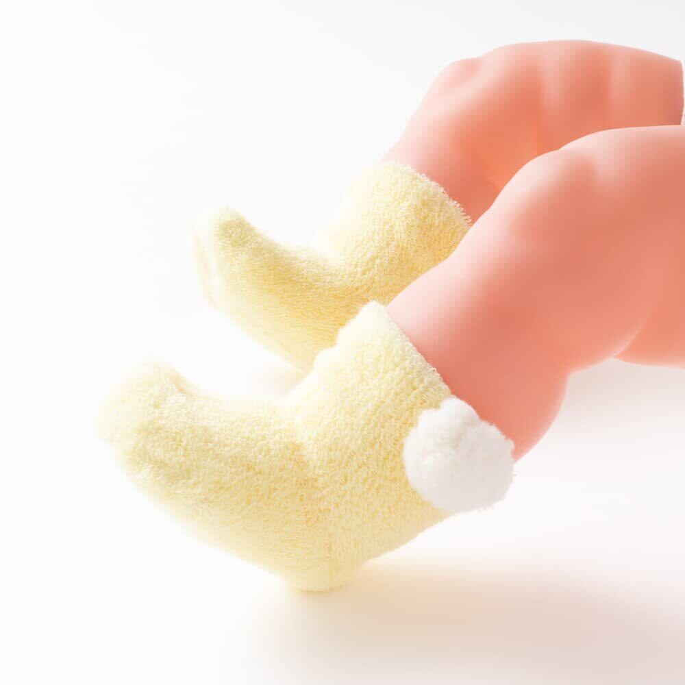 生まれたばかりのかわいい赤ちゃんのあんよに、やさしいパイル素材のソックスです。