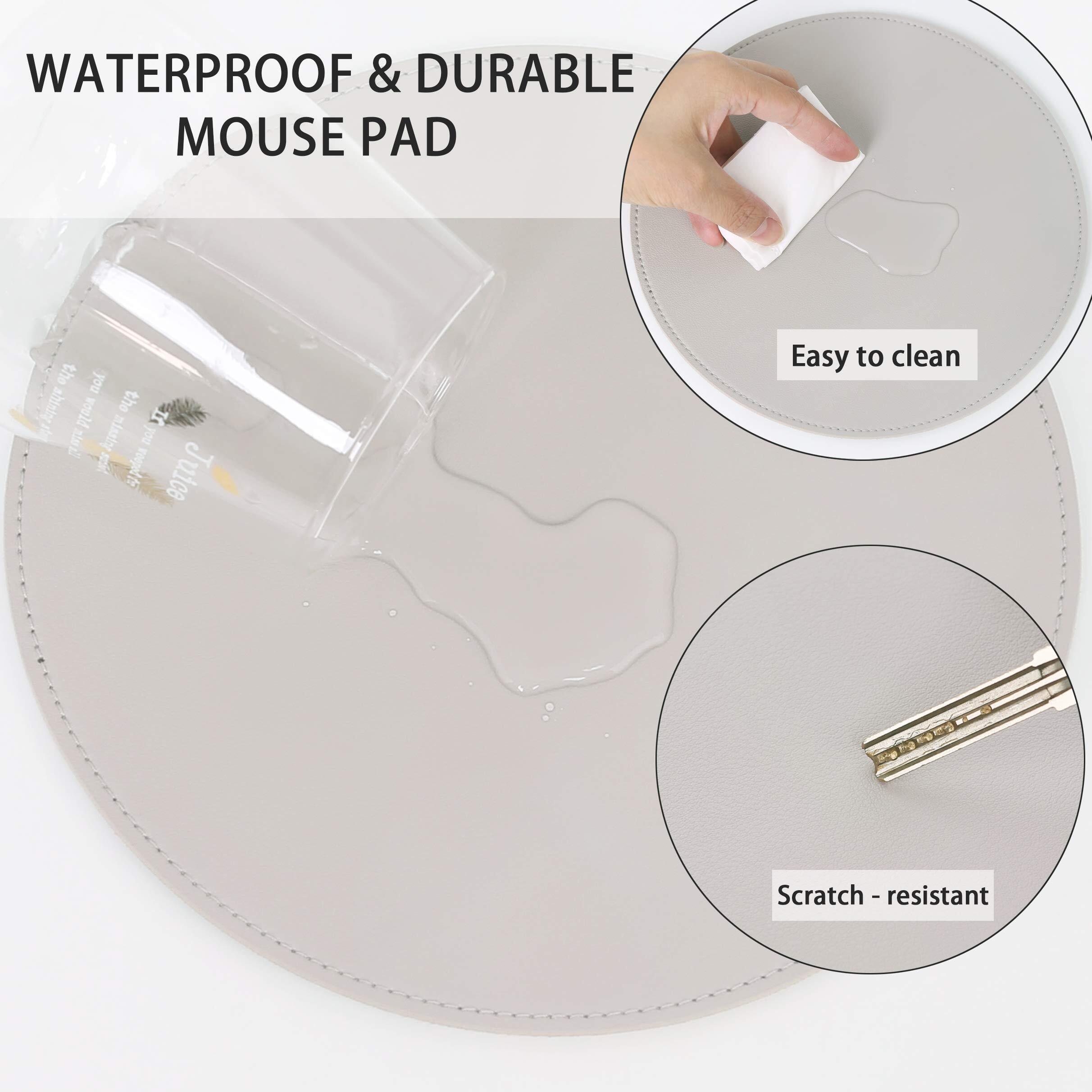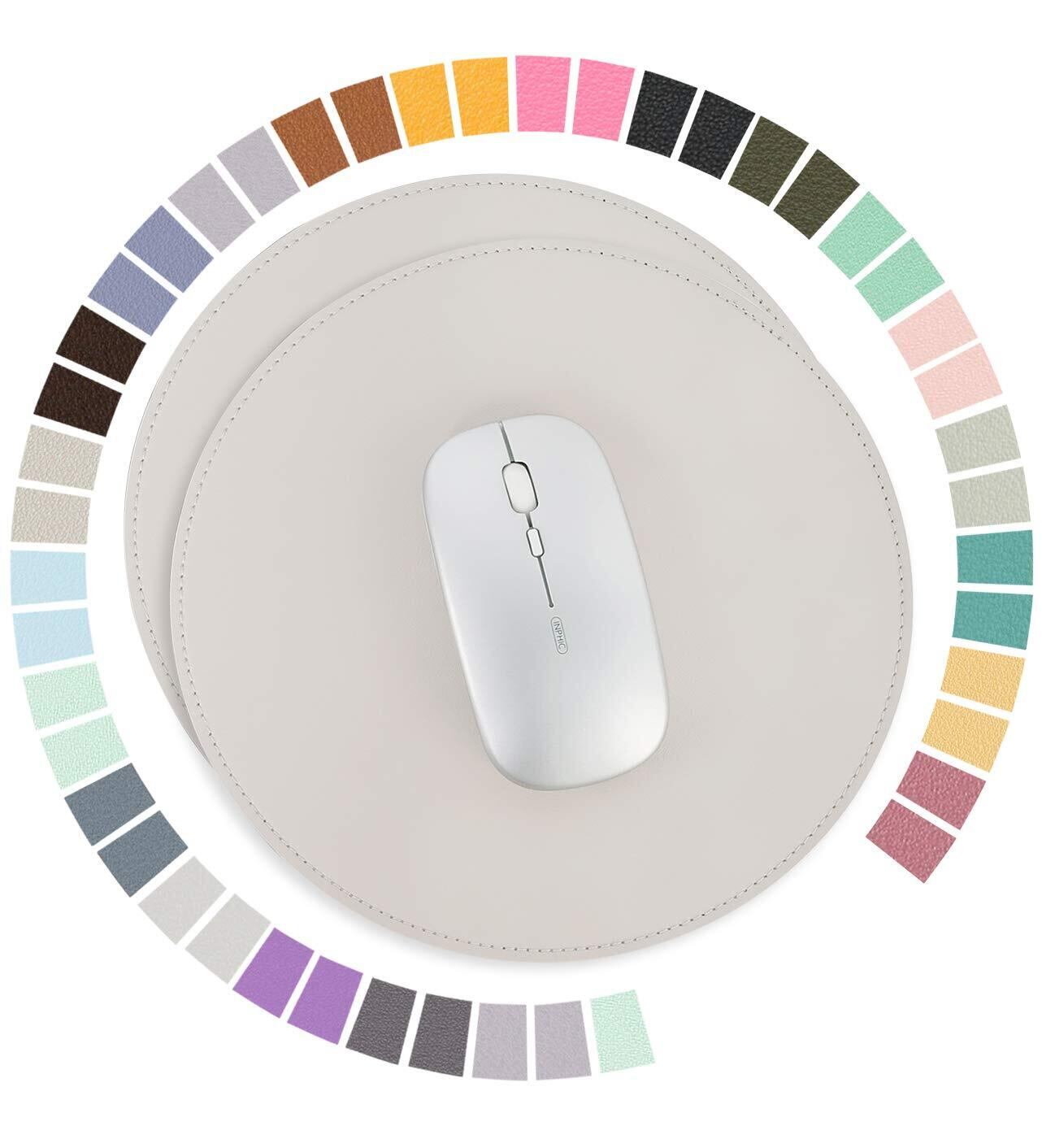 YSAGi マウスパッド PUレザー 埃 水防止 たくさんの色 滑り止め 薄型マウスパッド 耐久性良い 光学式マウス対応 二枚セット(丸型,アプリコットグレー)
