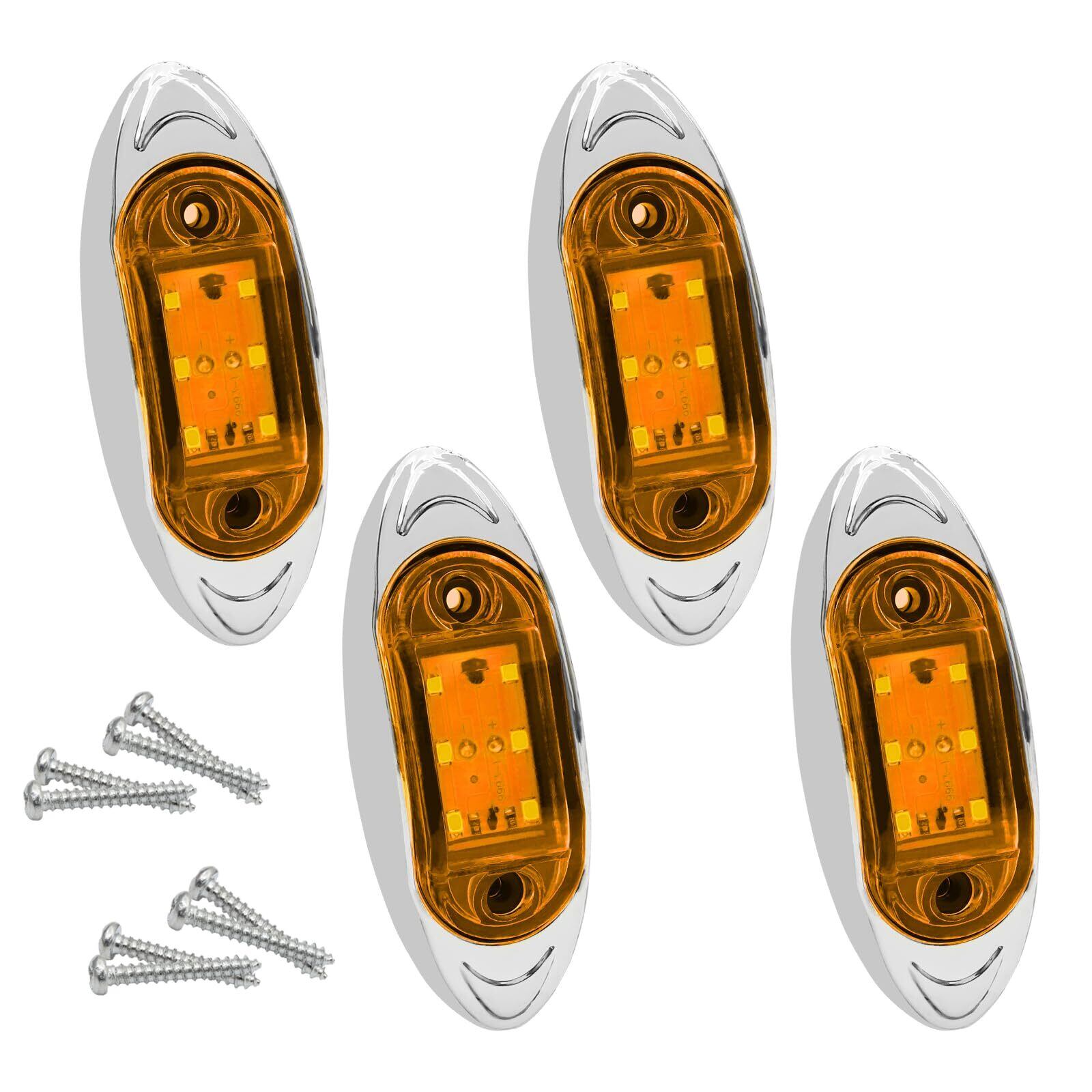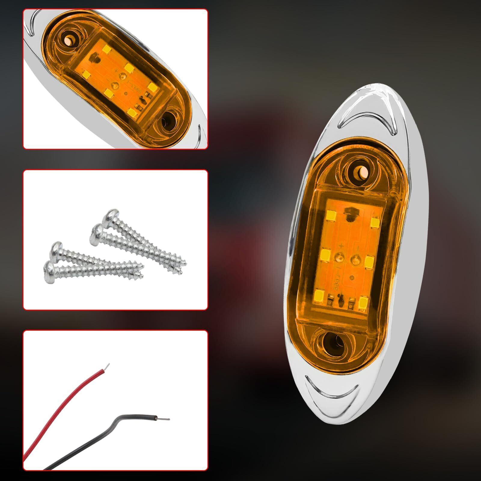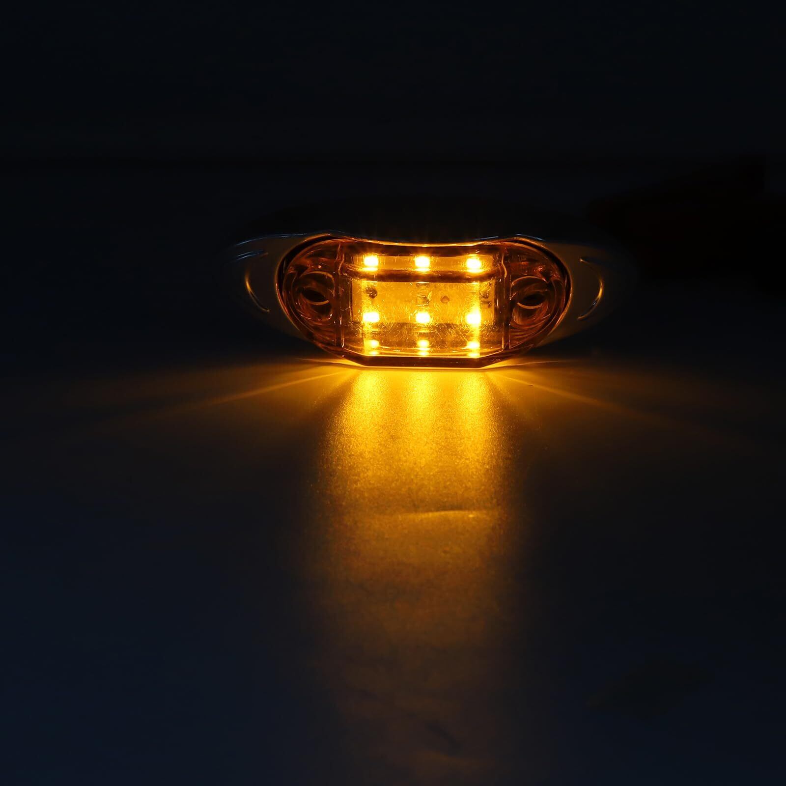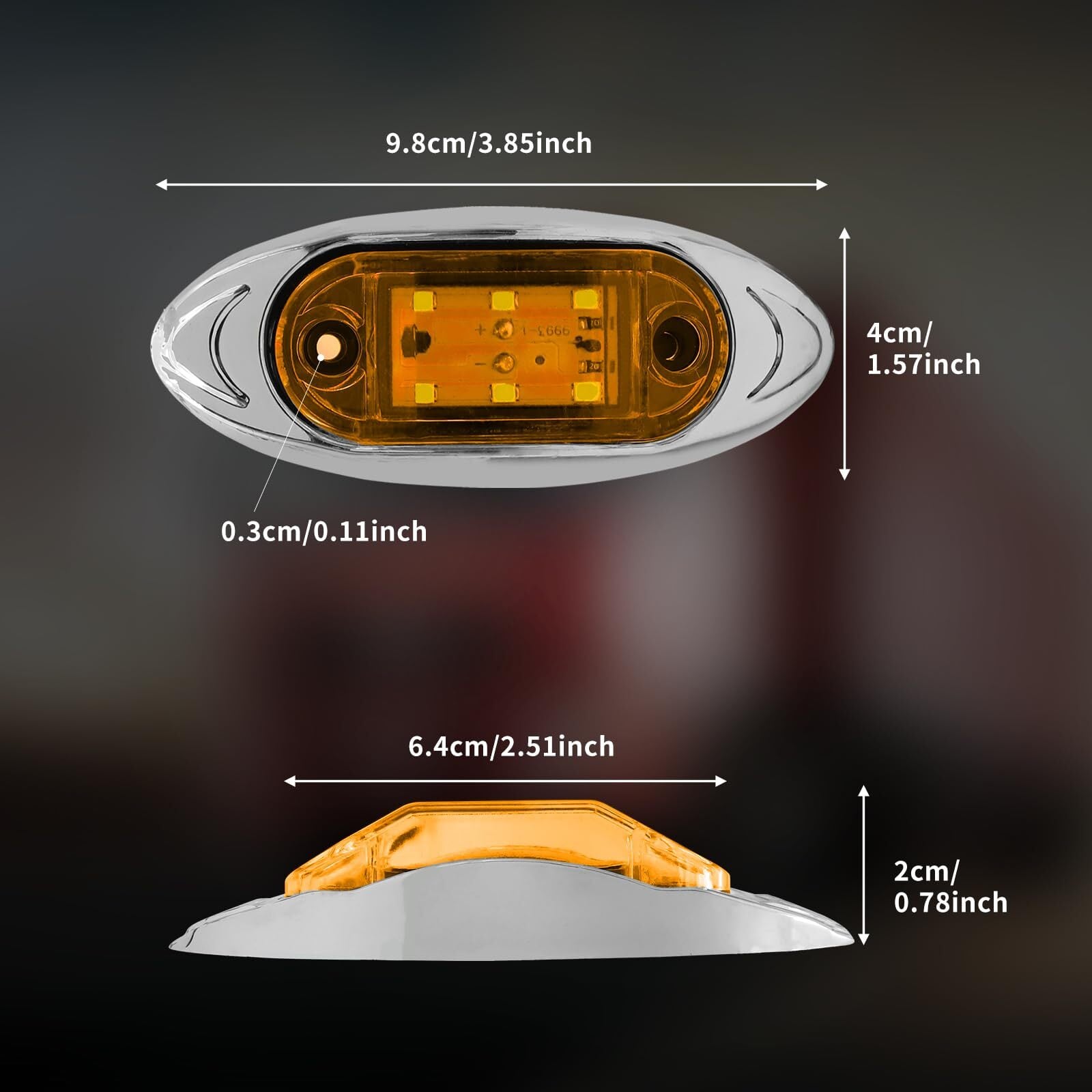 LED マーカーランプ サイドマーカー 車幅灯 側方灯 路肩灯 リアサイドライト 信号灯 トラック用品 6連LED 小型 汎用 高輝度 防水 12V 24V トラック サイドマーカーランプ ライト メッキフレーム 4個セット