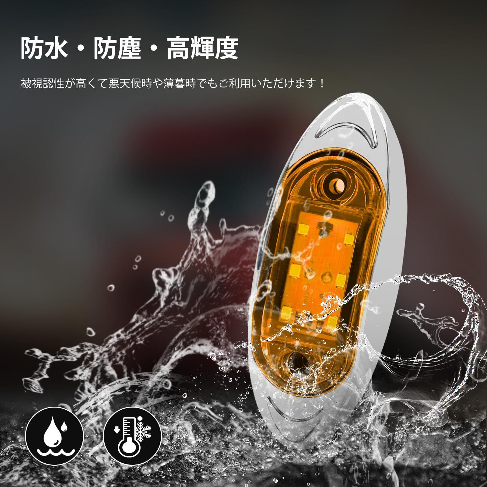 【高輝度LEDを6個使用】暗い夜道でも明るく輝きのある光を拡散し存在感を主張してくれるだけでなく、他車との接触などを防止する役目を果たします。また、トラックの大きさも示すことができるため、周りの車も注意をしやすく安心して運転できます。