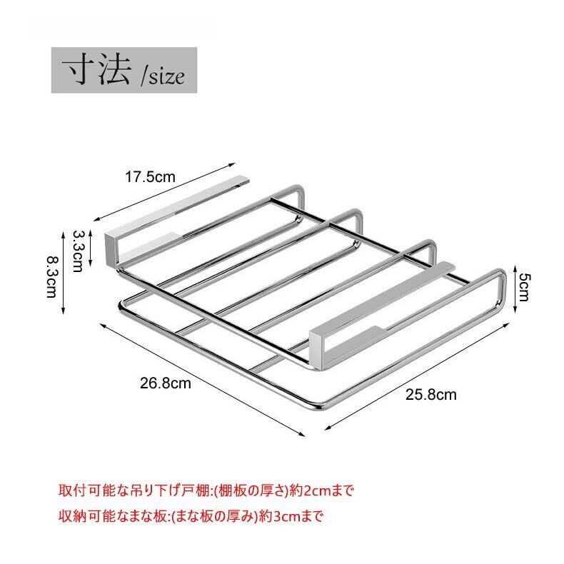 GOENDR まな板 収納 戸棚下まな板ホルダー まな板スタンド キッチン 布巾ハンガー 吊り戸棚 吊り下げラック 戸棚下ラック キッチン吊り戸棚下 ステンレス製 穴あけ不要 ネジ止め不要【奥行き25.8㎝】