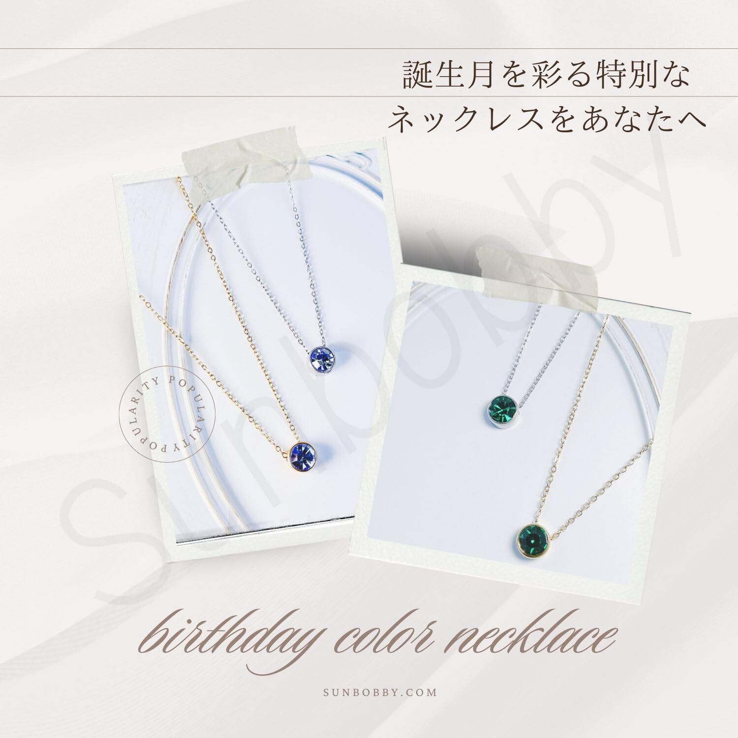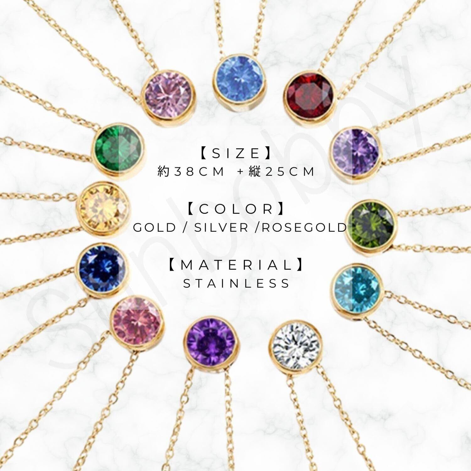 【新着商品】[sunbobby] 12ヶ月誕生石 ネックレス カラー AAA最高級キュービックジルコニア ゴールド シルバー ローズゴールド チェーン付き