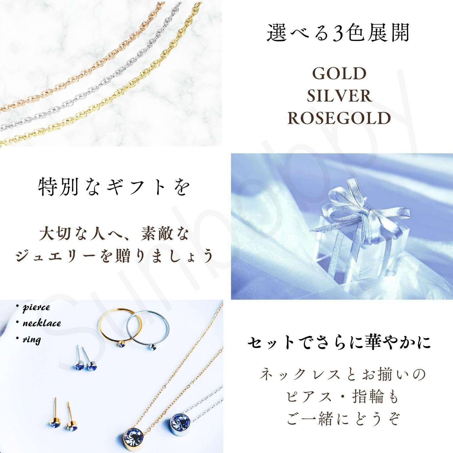 ✨誕生石シリーズ: ピアス・ネックレス・指輪と展開しています。誕生石ジュエリー3点セットで、いつもより贅沢な毎日を