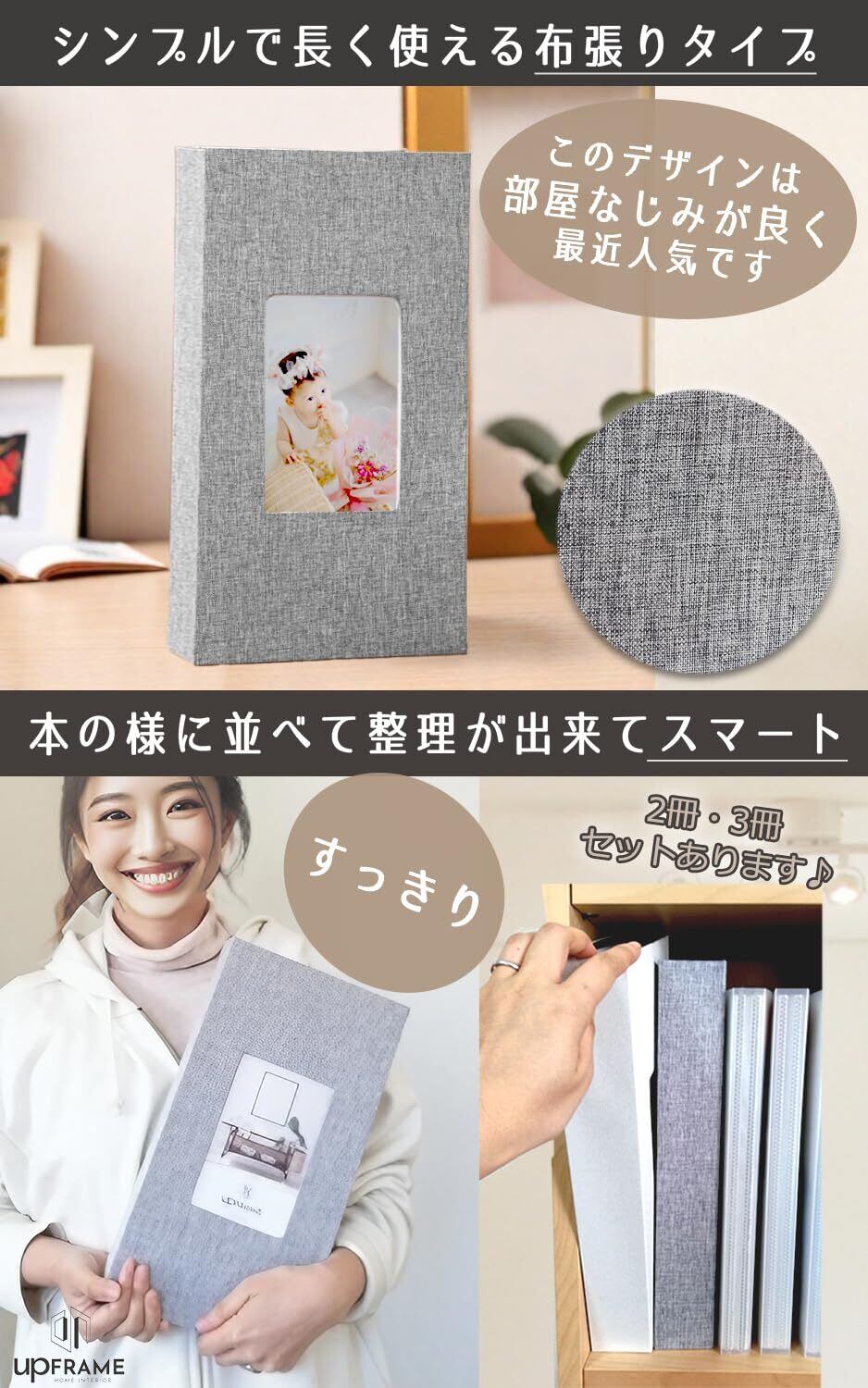 インテリアに馴染むポケットアルバム!本のように棚に格納しやすいサイズ感、シンプルデザインのおしゃれな写真アルバムです。3段仕様で300枚入る大容量アルバム。写真整理・保管に。