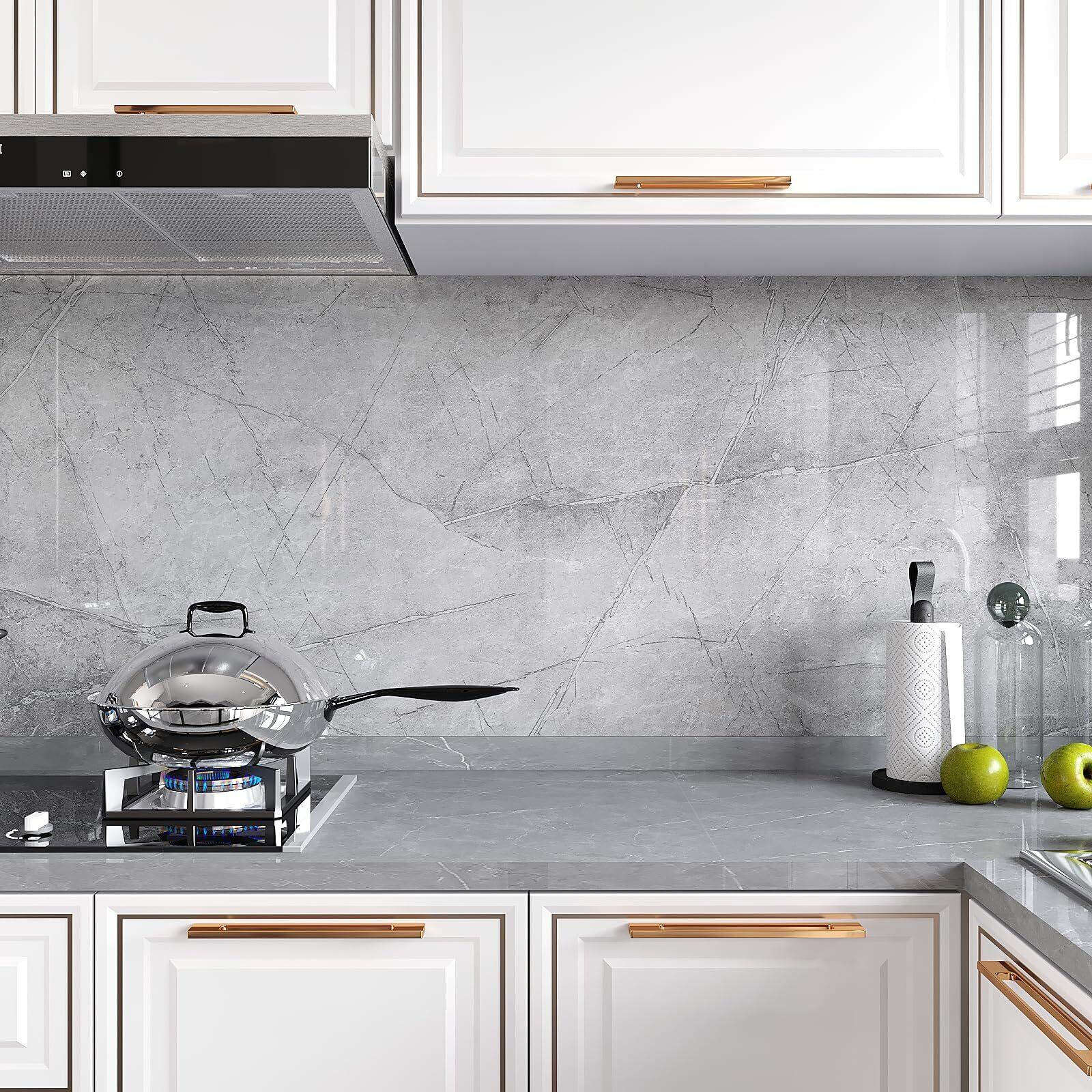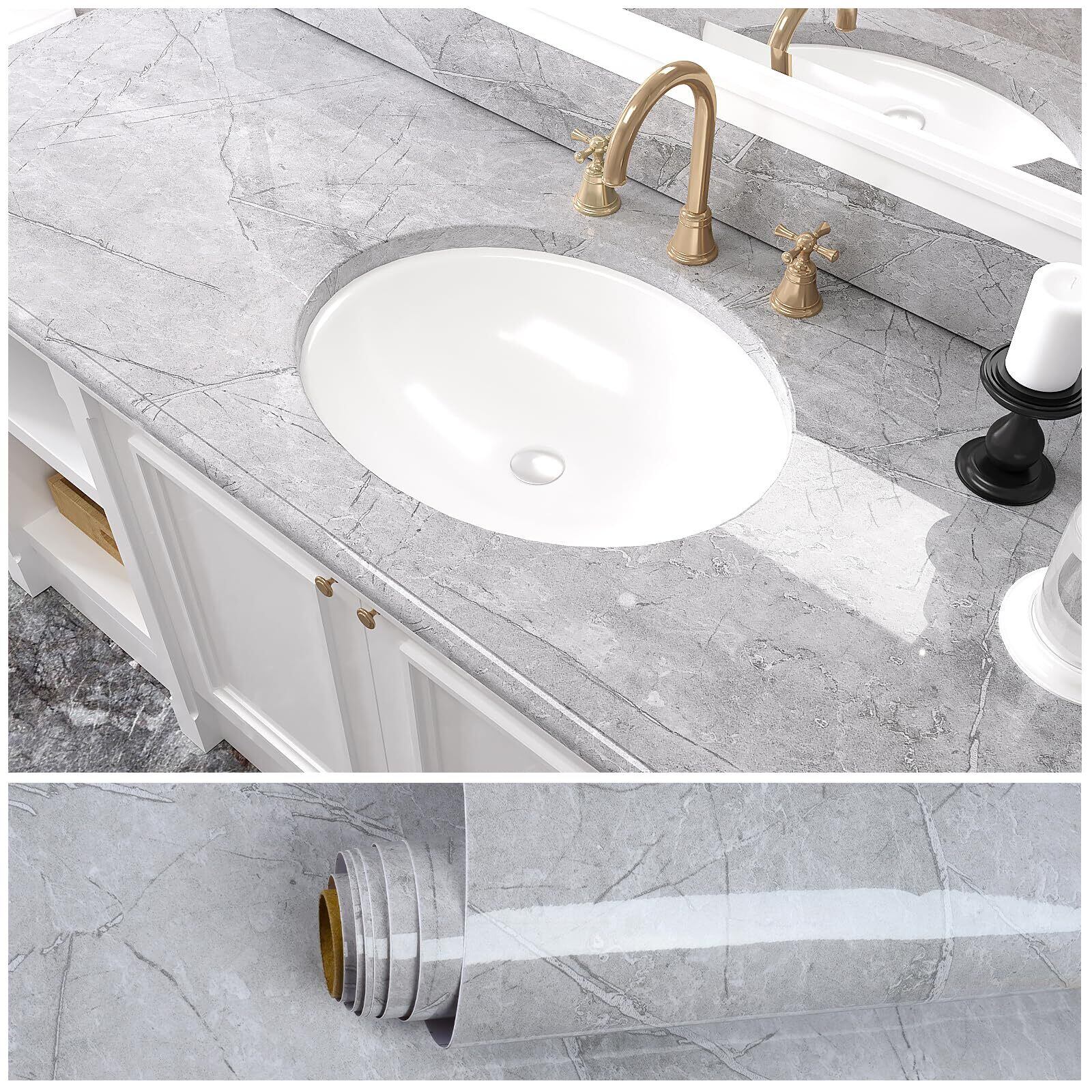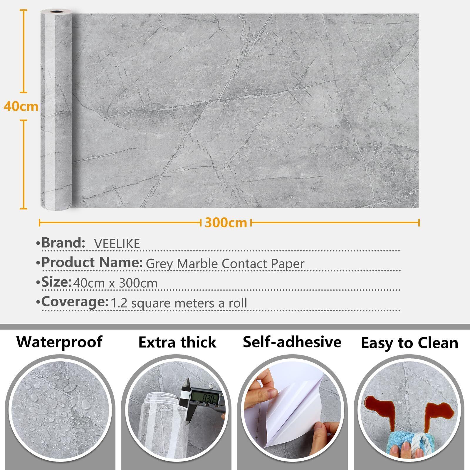 VEELIKE 壁紙シール 大理石調 リメイクシート 大理石 グレー 光沢 のり付き はがせる 幅40X300cm テーブル リメイクシート 防水 耐熱 難燃 耐摩擦 防汚 カッティングシート ウォールステッカー 剥がせる壁紙クロス インテリア リフォーム 補修 模様替え 賃貸ok DIY トイレ キッチン 玄関 流し台 食器棚 天板 シンク 北欧 おしゃれ マーブル