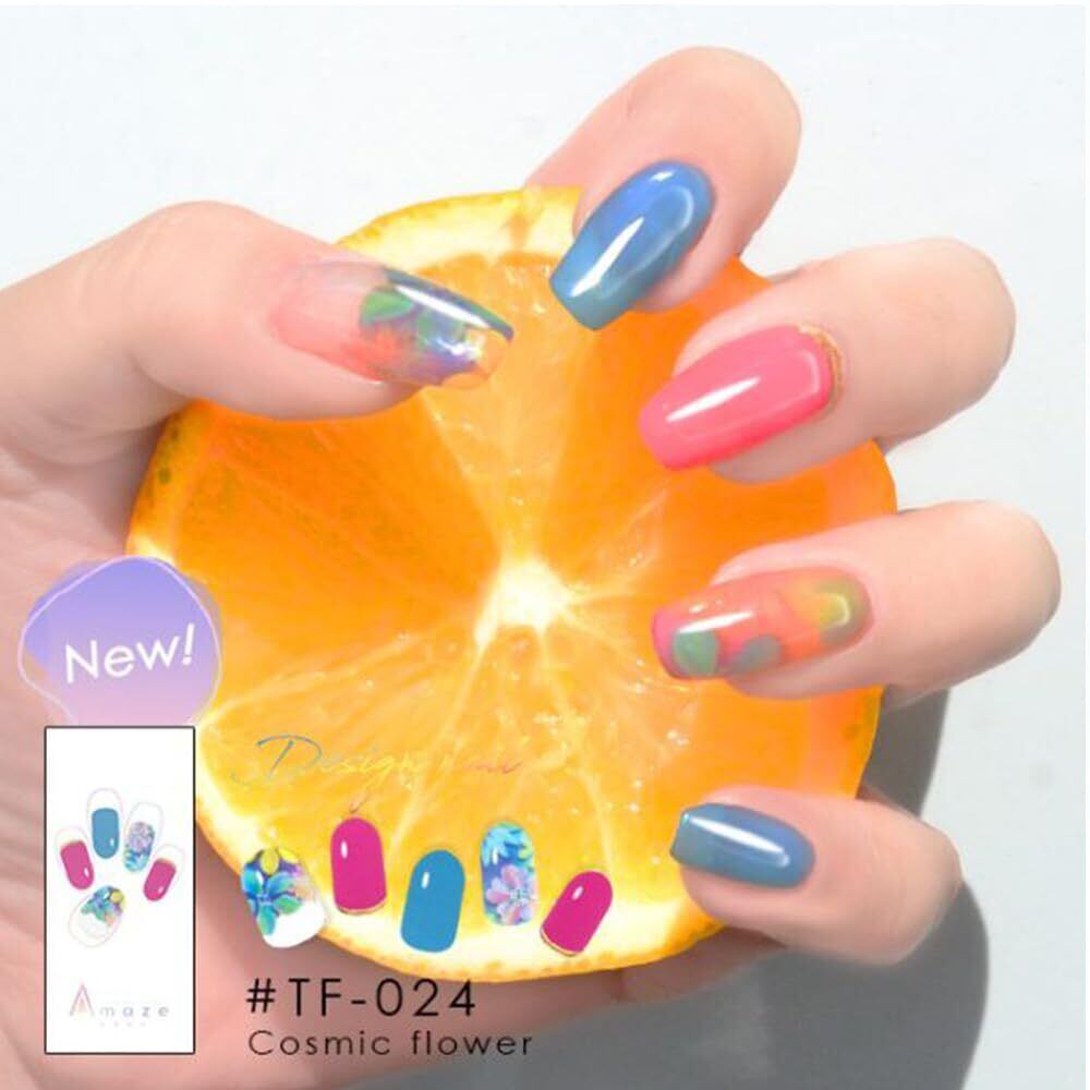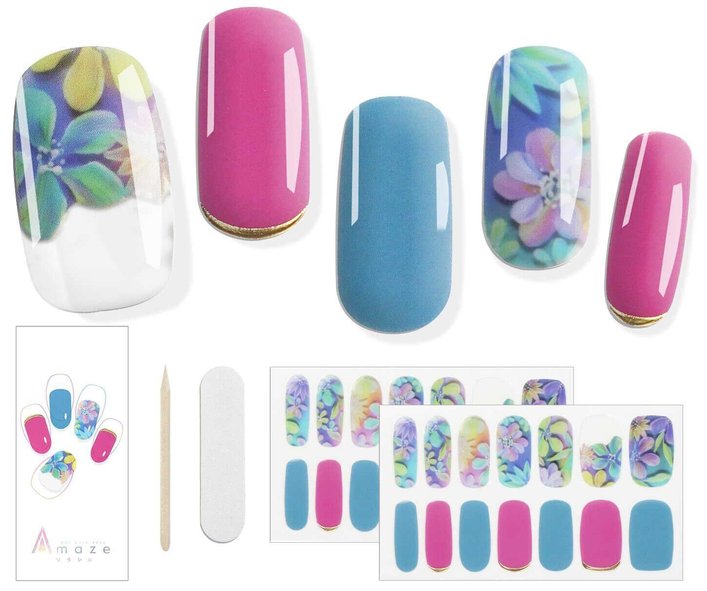 AMAZE アメイズ リラシル ファンデーションカラー ジェルネイルシール ジェルネイルシール 硬化タイプ ジェルネイルカラー ネイルシール カラージェル セルフネイル 簡単ネイル 貼るだけ硬化 ホームネイル 人気デザイン (コズミックフラワー, スタンダード)