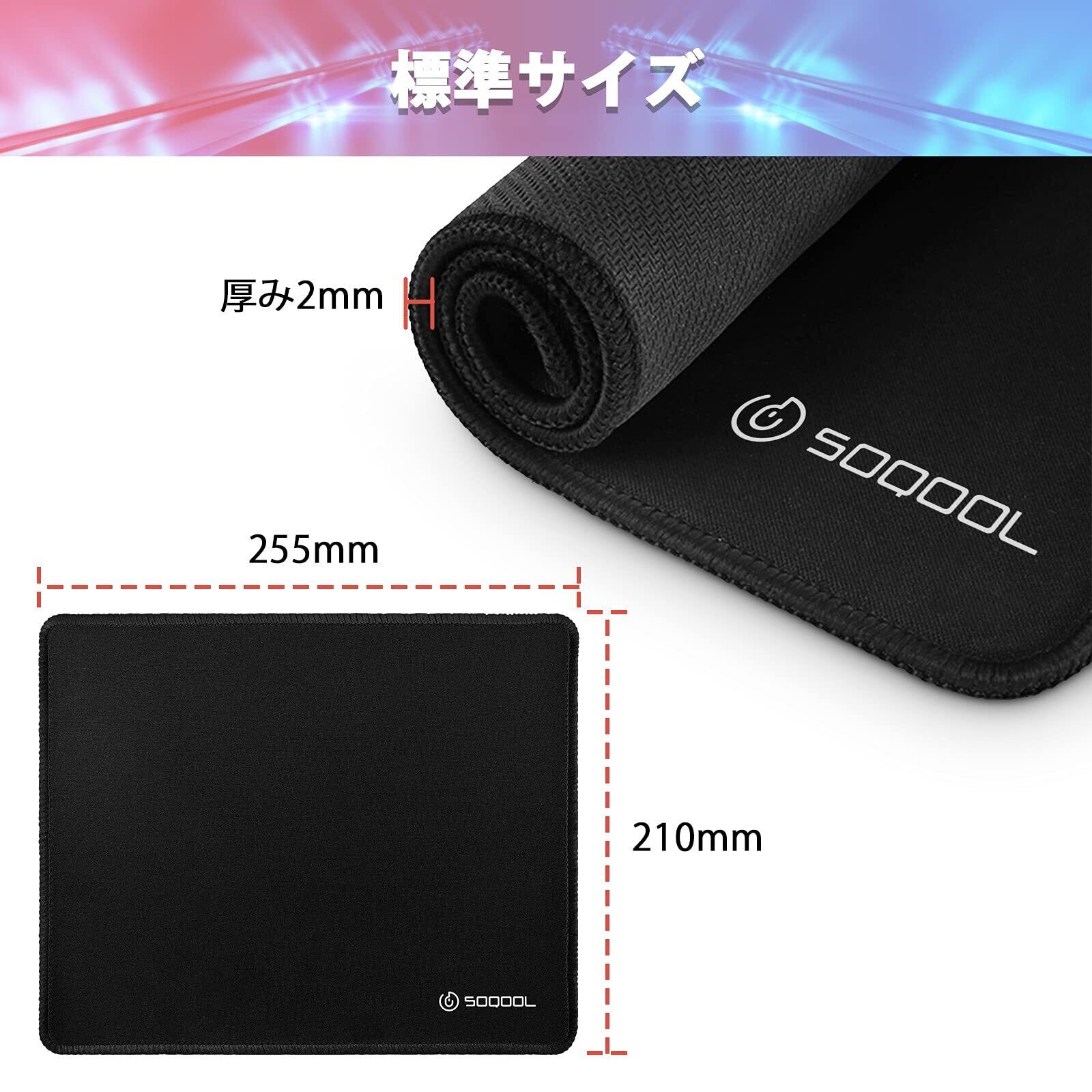 【在庫セール】Soqool マウスパッド 小型 25.5×21×0.3cm ゲーミングマウスパッド マウス パッド 滑り止め オフィス用 光学マウス対応 水洗い エッジ周辺強化 耐久性が良い おしゃれ Sサイズ (2枚 ブラック)
