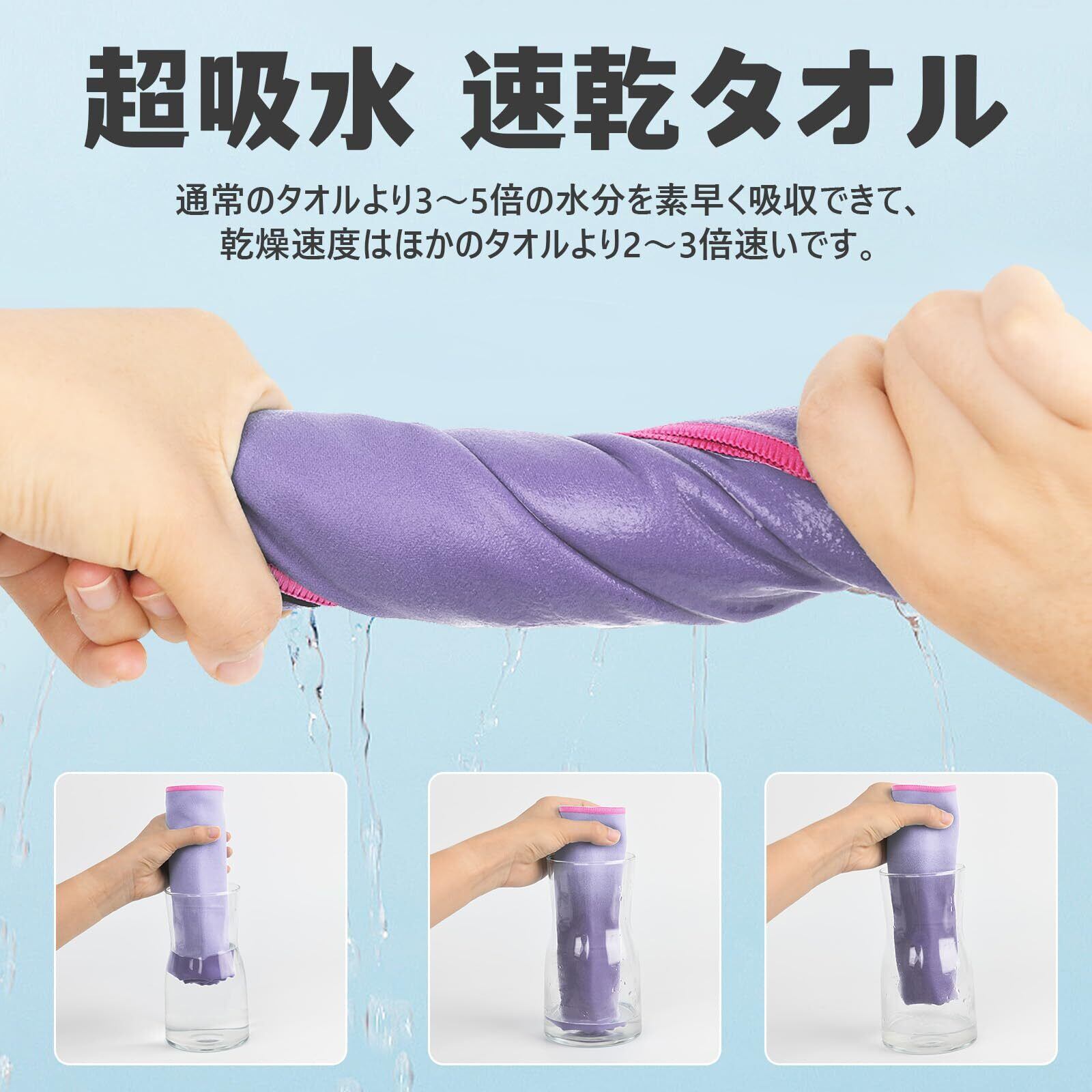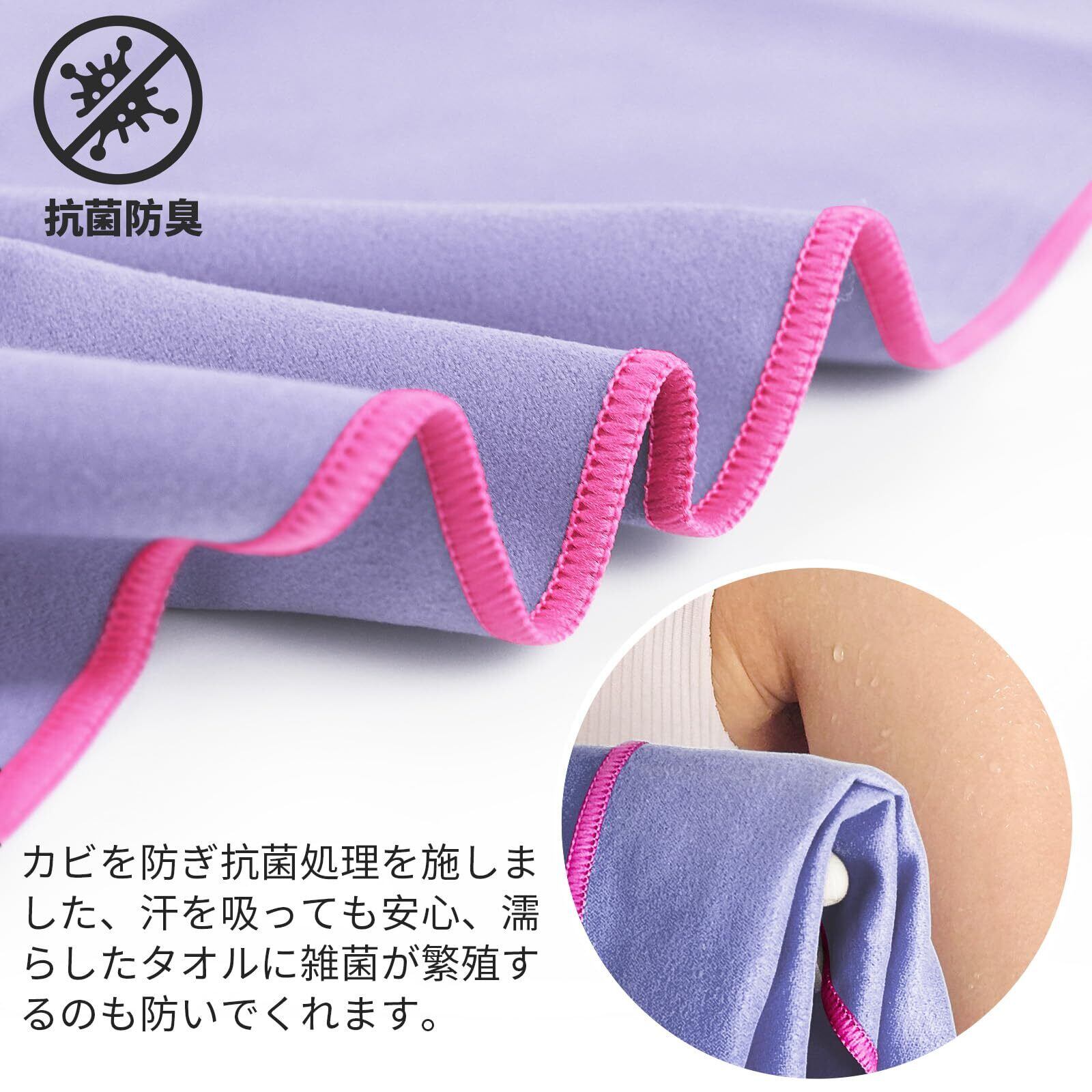 【超吸水・速乾・抗菌・防臭】通常のタオルよりこのマイクロファイバー タオルは3〜5倍の水分を素早く吸収できて、乾燥速度はほかのタオルより2〜3倍速いです。カビを防ぎ抗菌処理を施しました、汗を吸っても安心、濡らしたタオルに雑菌が繁殖するのも防いでくれます。