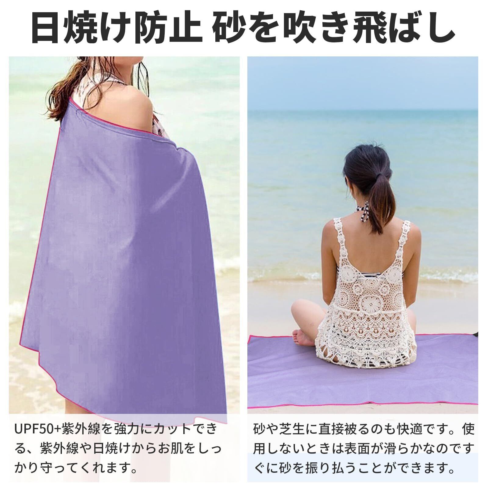 【おしゃれなデザインと豊富な用途!】ラベンダーカラーは見た目にも優しく、普段使いやアウトドアイベントでもおしゃれに決まります。Lサイズ(76×152cm)は、バスタオルとしてもしっかり使える大きさです。友人とのビーチパーティーや家族での海水浴など、特別な瞬間を更に引き立てること間違いなしです!