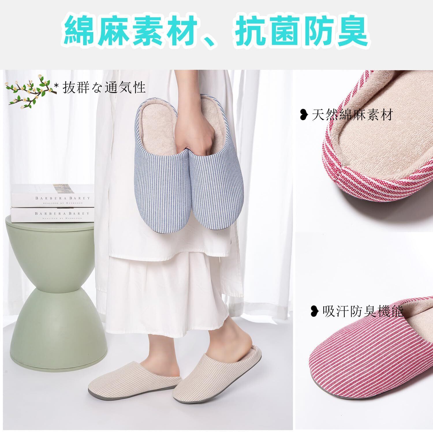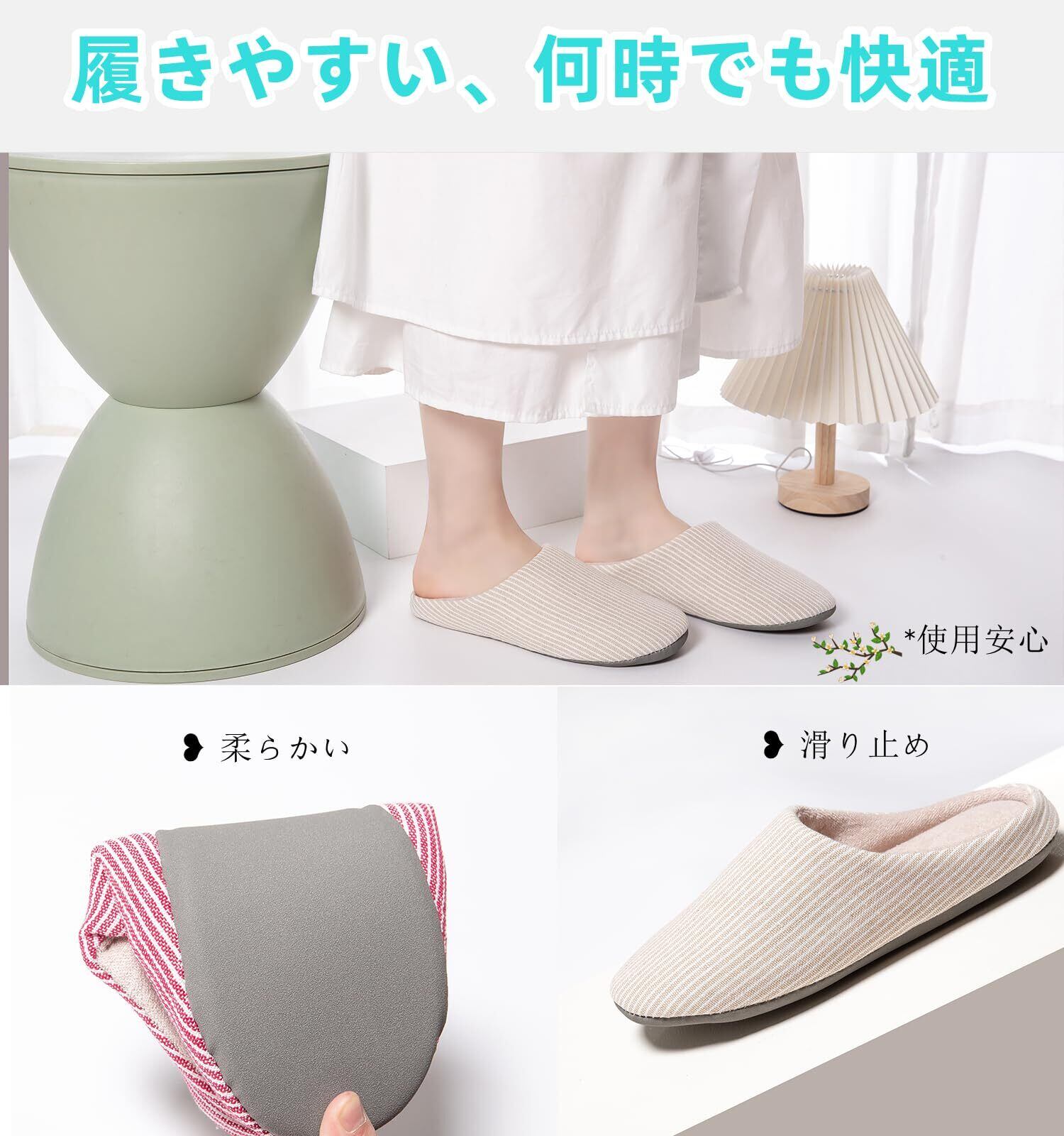 【通気防臭&デザイン】実用性とデザインに優れた柔らかいスリッパです。手触りが快適な天然棉素材を採用され、通気性が良く、吸収性や発散性に優れており、防臭効果があります。見た目もおしゃれなストライプ柄で、和風なお家、洋風なお家両方の玄関どちらに置いてあっても違和感はありません。