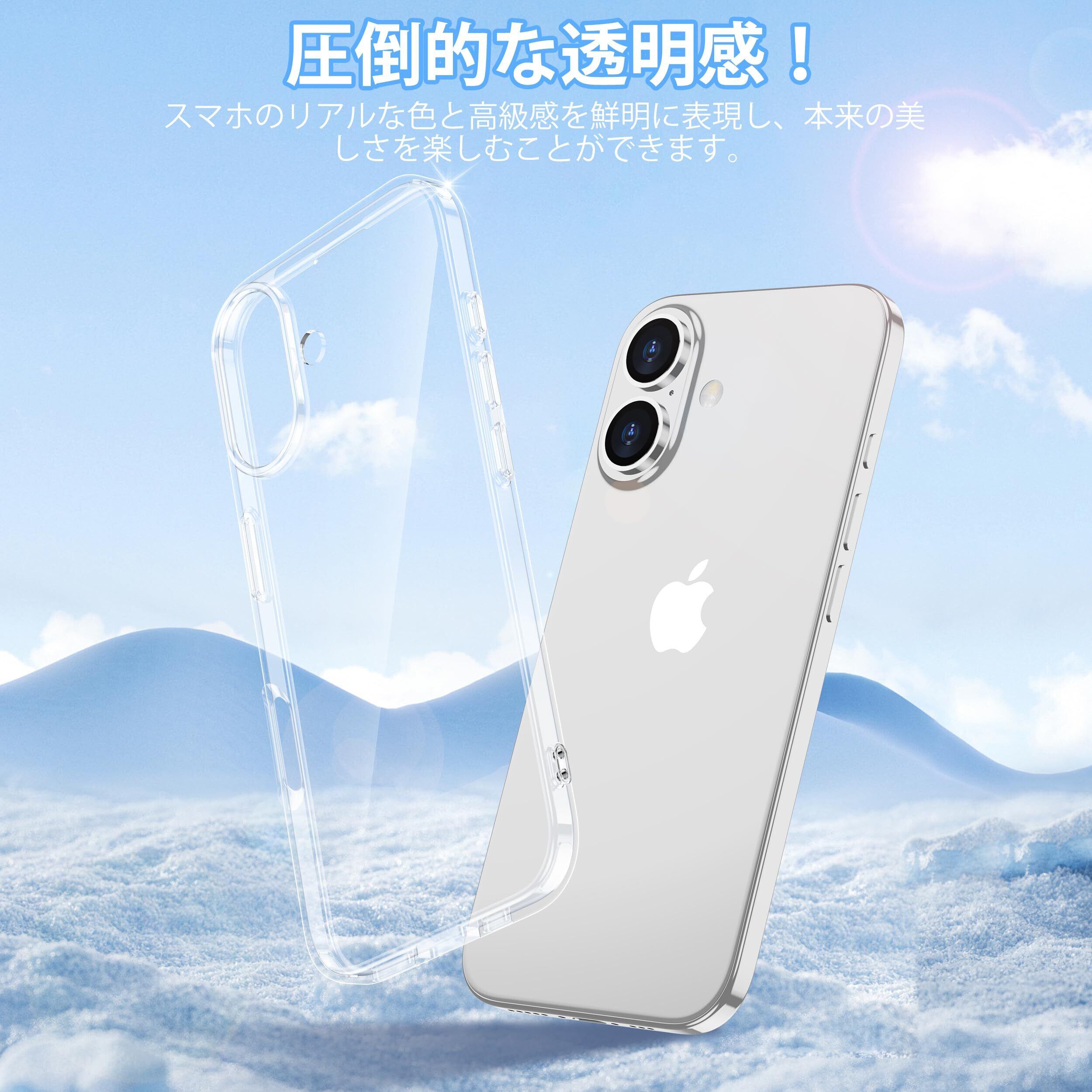 【在庫セール】iPhone 16 ケース クリア 耐衝撃 黄ばみ防止 アイフォン16ケース 米軍MIL規格 ワイヤレス充電対応 SGS認証 指紋防止 滑り止め 薄型 耐摩耗性 あいふぉん16 あいふぉん16 カバー スマホケース 6.1インチ 透明 JUSTCOOL