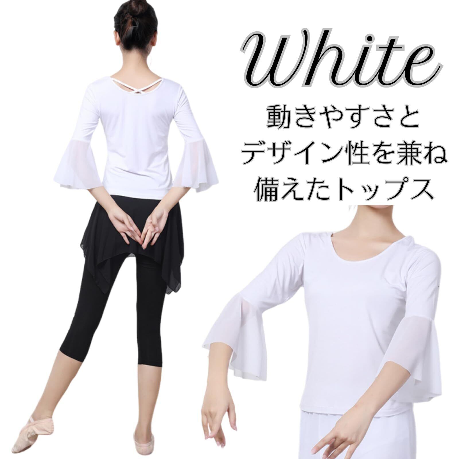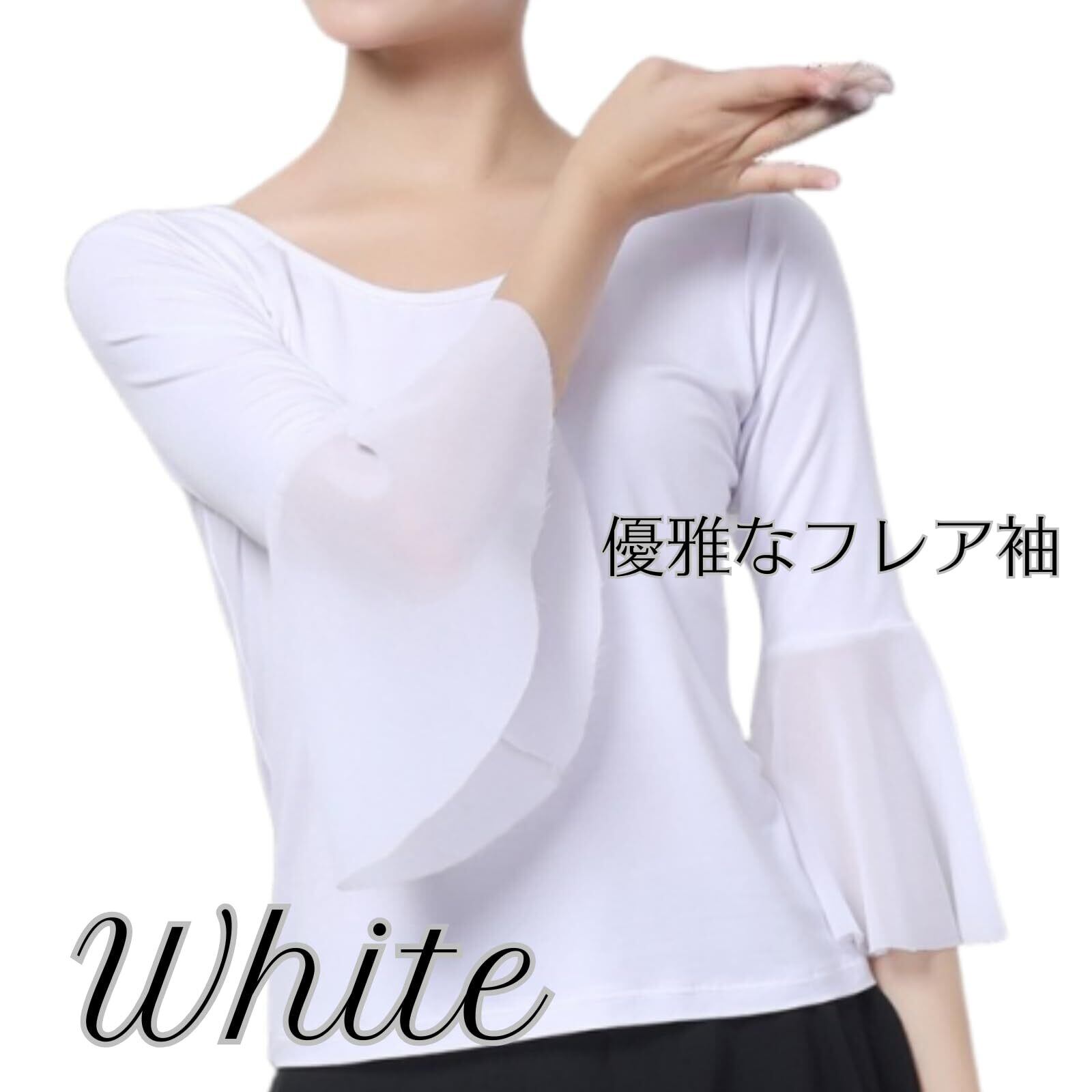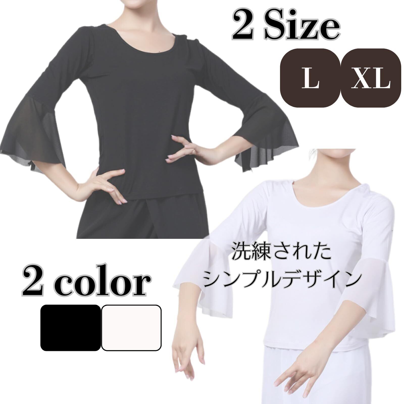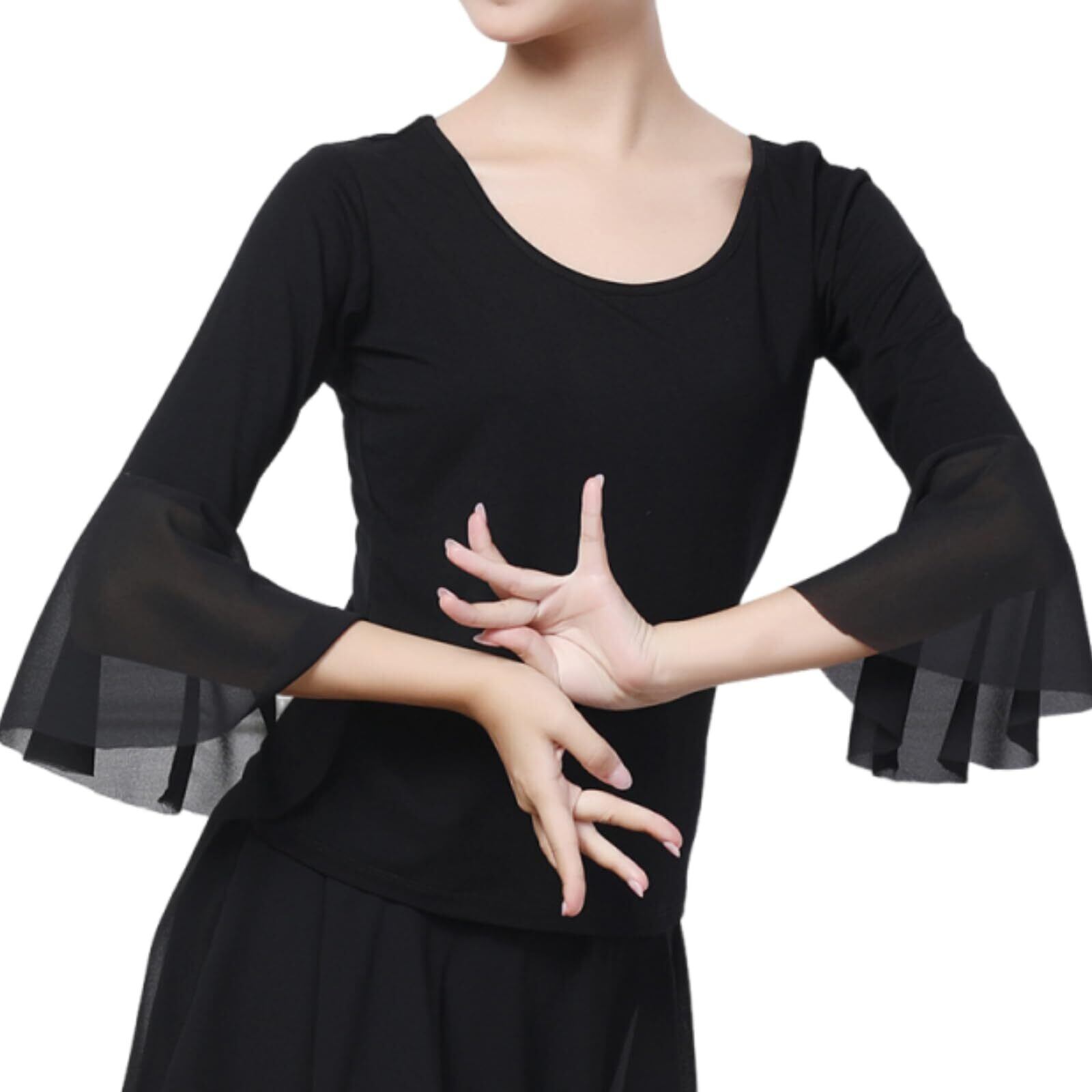 【数量限定】[Belle Iza Bella] ダンス 衣装 レディース トップス 社交ダンス モダンダンス 大人 ヨガ ウェア 練習着 無地 フレア 袖 薄手
