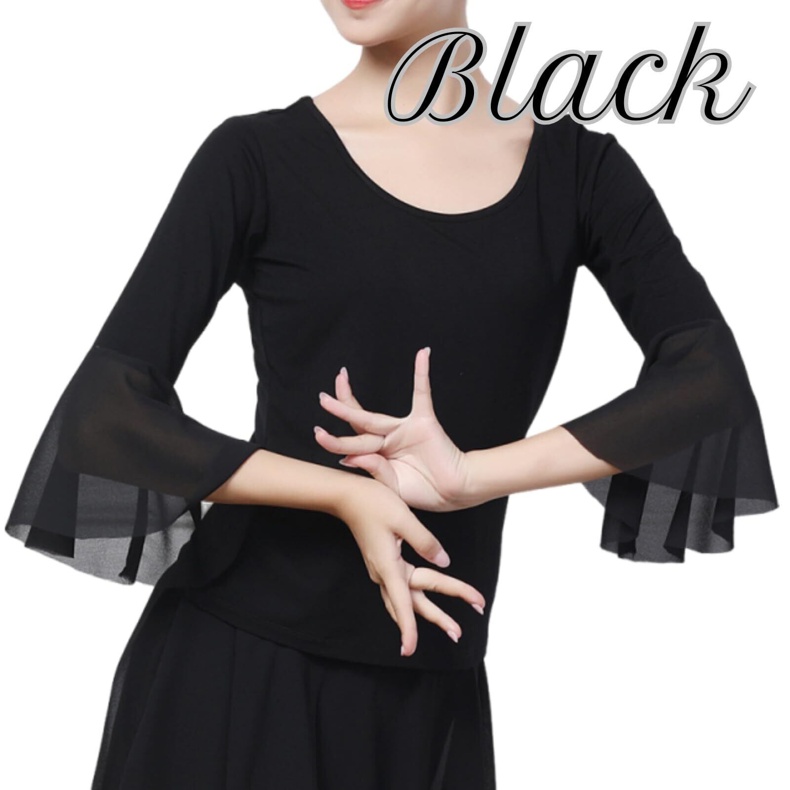 [Belle Iza Bella] ダンス 衣装 レディース トップス 社交ダンス モダンダンス 大人 ヨガ ウェア 練習着 無地 フレア 袖 薄手