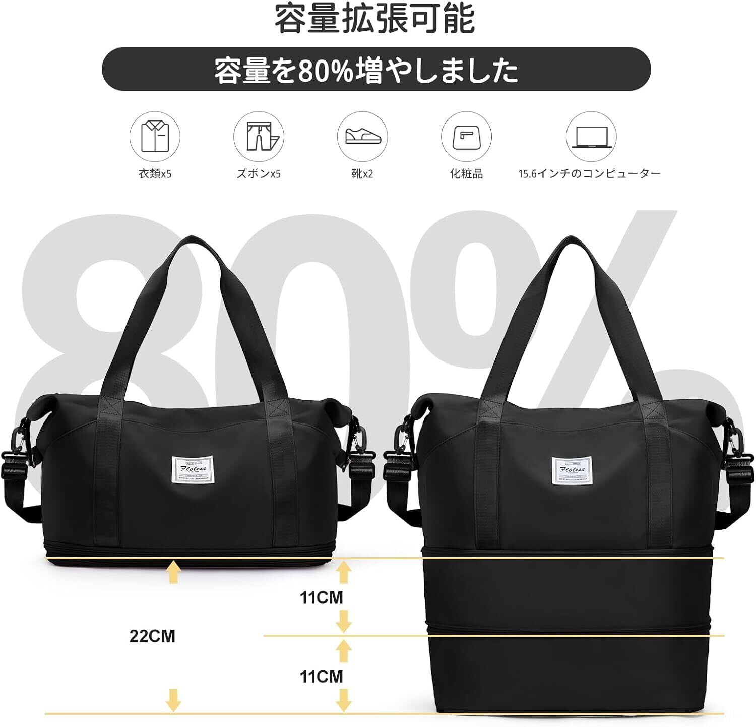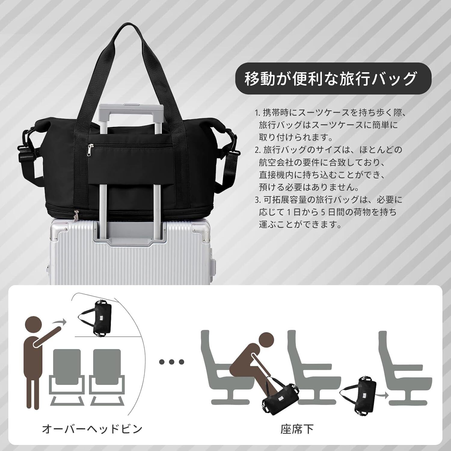 【ダブル拡張機能付き!】このバッグはダブル拡張機能を持ち、必要に応じてサイズを調整できるので、荷物の量に合わせて柔軟に対応します。旅行先でお土産を買っても安心の設計です。