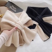 【心地よい温かさを提供するニットマフラー!】この【数量限定】のマフラーは、柔らかで厚みのあるニット素材を使用し、秋冬の寒い季節にぴったりなアイテムです。クロス差し込みデザインで、首元をしっかり包み込んでくれるので、冷え込みが厳しい日でも安心です。
