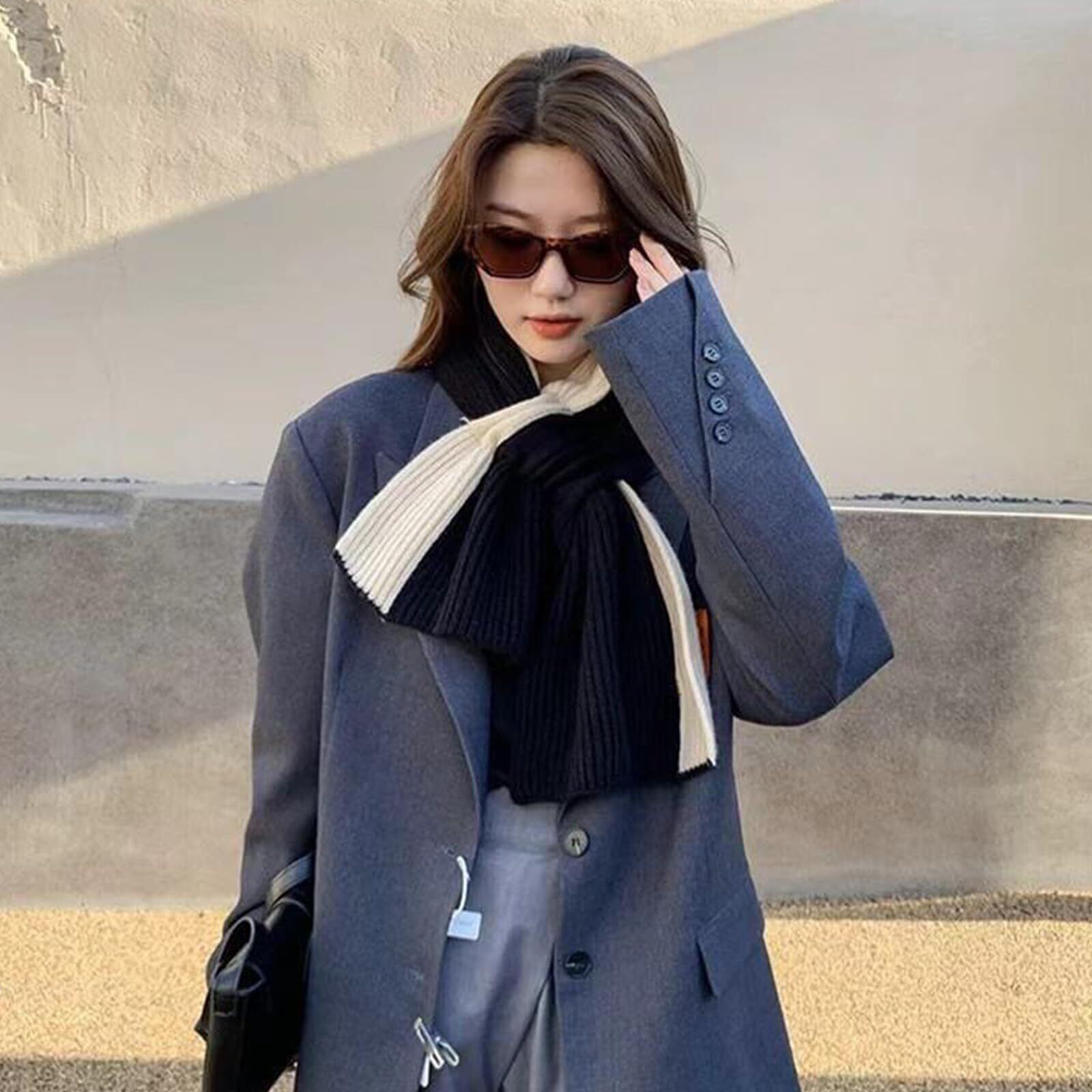 【多様なスタイルに合わせやすい!】この両面タイプのマフラーは、シンプルかつ可愛いデザインで、カジュアルな普段使いからオフィススタイル、通学シーンまで幅広く活躍します。使い心地の良さとファッション性を兼ね備えているので、さらにおしゃれな印象を引き立てます。