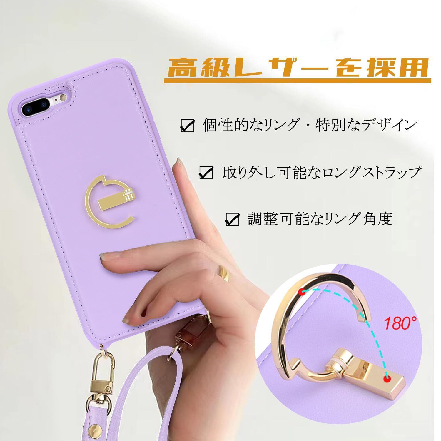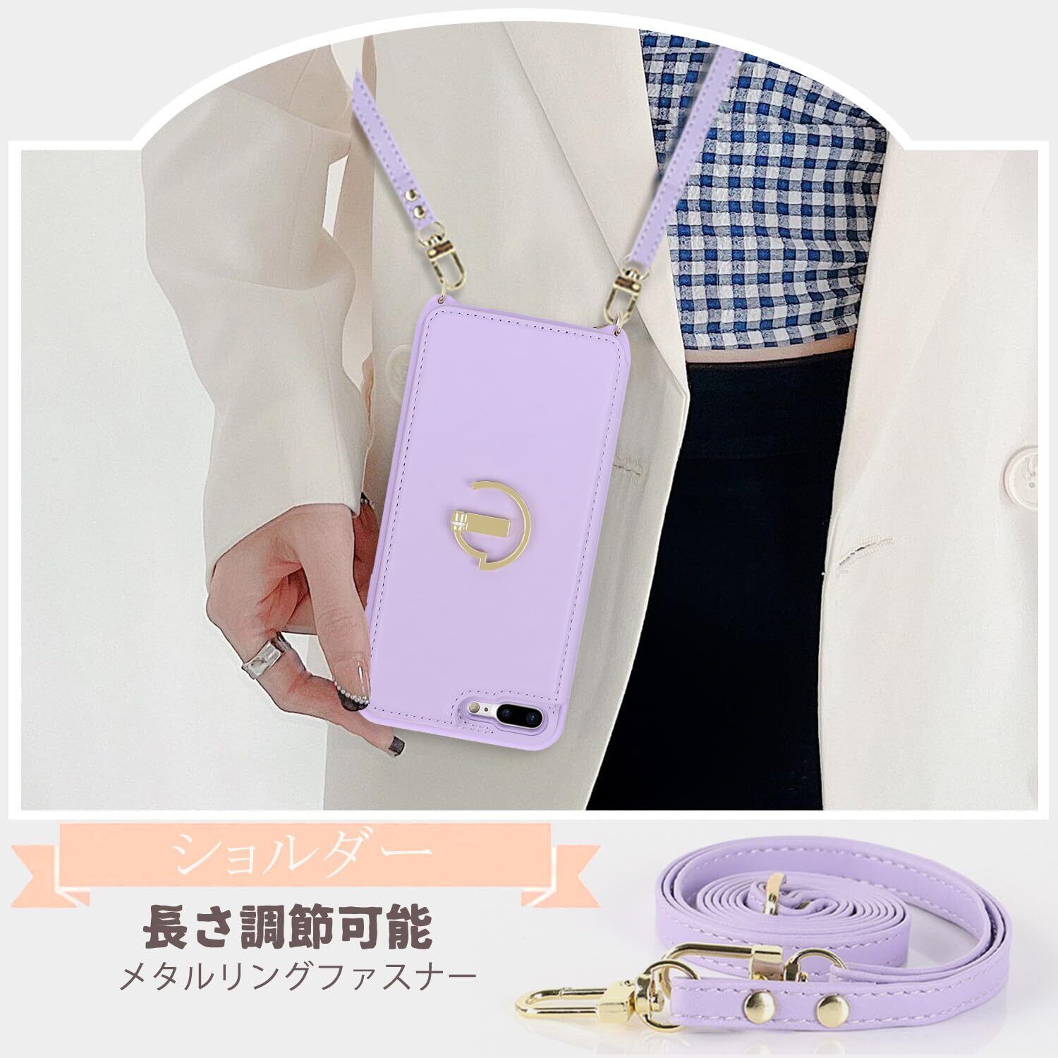 Havaya スマホショルダー iPhone 8 plusケース iphone 7 plus ケース ショルダー リング付き レザー 肩掛け カード収納(アイホン8プラス/アイフォン7プラス/アイフォン8plus/あいふぉん7plus 5.5インチ対応)-パープル