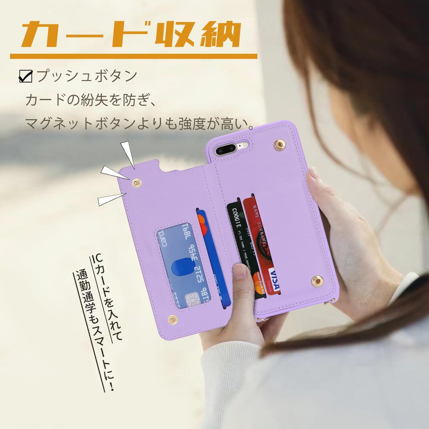 【便利なカード収納機能!】ケースの内部にはカード収納スペースがあり、外出時に財布を持ち歩く必要がありません。必要なものを一つにまとめることで、スマートで軽やかなライフスタイルをサポートします。