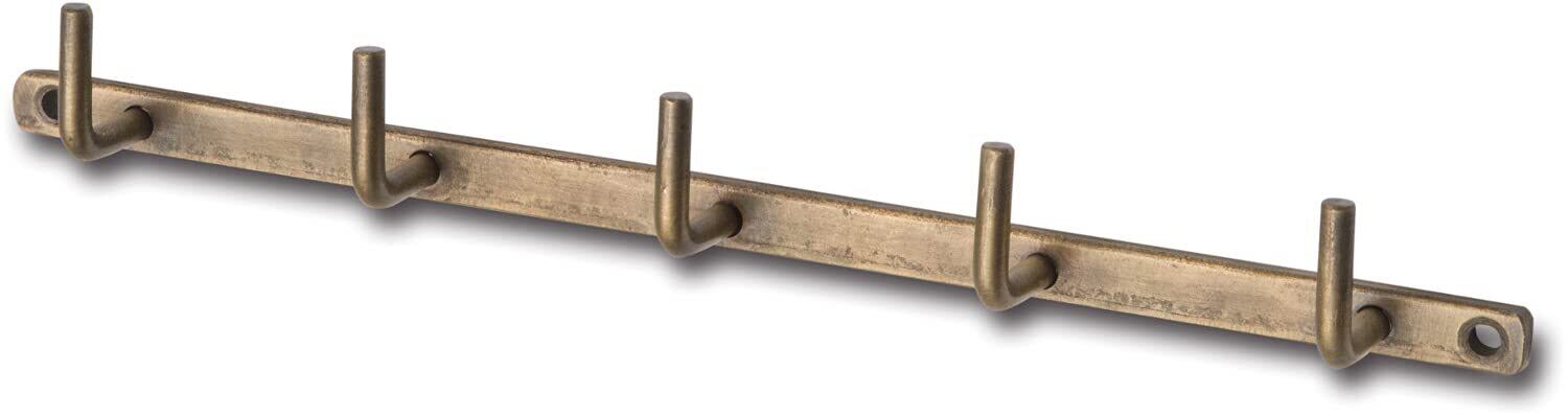 【インテリアにスタイリッシュなアクセントを!】この【特価セール】のポッシュリビング アイアンウォールフックは、あなたの部屋を華やかに演出するアイテムです。5連のデザインで、帽子やジャケット、バッグなど、様々なアイテムを美しくディスプレイすることができます。シンプルでありながら目を引くアンティークゴールド仕上げが、どんなインテリアにも調和します。