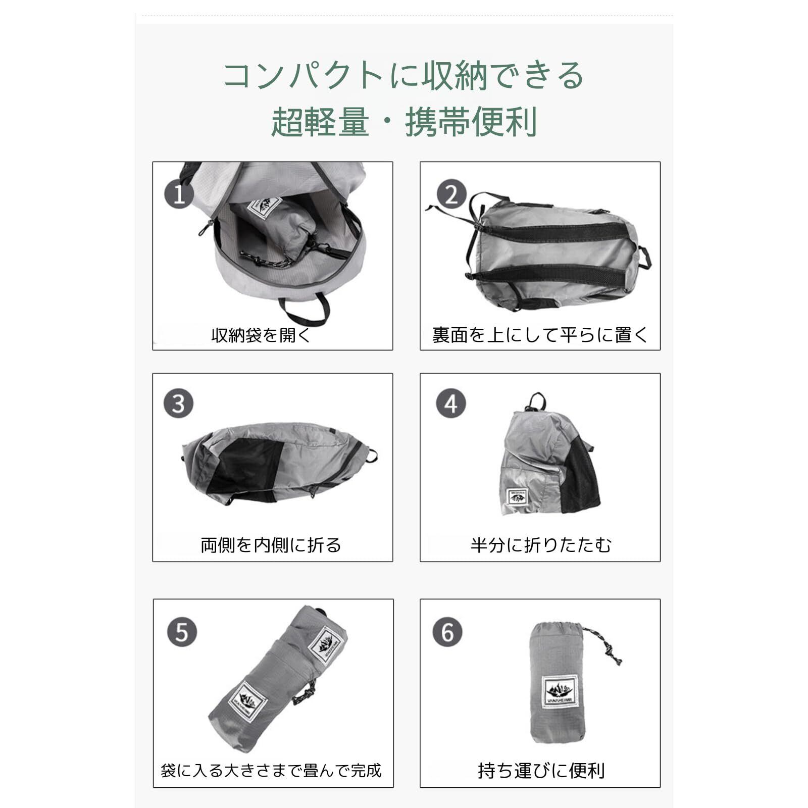 【多用途に対応!性別やシーンを問わないデザイン!】男女兼用のシンプルなデザインで、キャンプ・ハイキング・通勤・通学など幅広いシーンでお使いいただけます。また、収納袋付きで、持ち運びも楽々!出かける際にはとても重宝します。