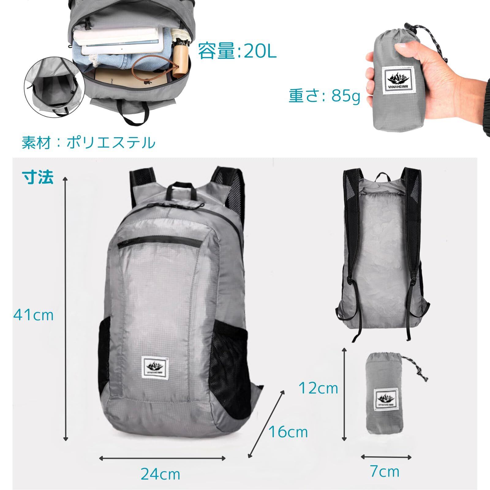 【軽量かつコンパクト!アウトドアや旅行に最適なバックパック!】この【特価セール】の[Eclairage] アウトドア バックパックは、20Lの容量を持ちながらも非常に軽量で、折りたたんで収納可能なポケッタブルデザインです。バックパックは、普段使いのエコバックやサブバッグとしても活躍し、必要な時にサッと取り出して使えます。