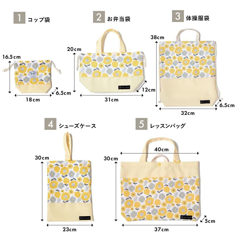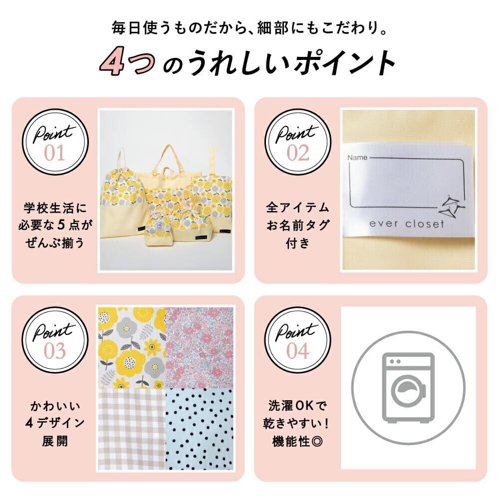【2022最新】[ever closet] エバークローゼット レッスンバッグ 5点セット 入園入学セット 女の子 入園入学準備 シューズケース 上履き入れ 体操着袋 子供 キッズ