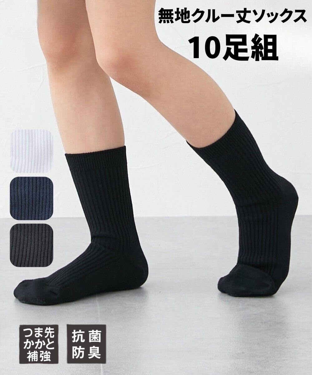 ニッセンオリジナル 抗菌防臭 しっかり丈夫な無地スクールハイソックス10足組