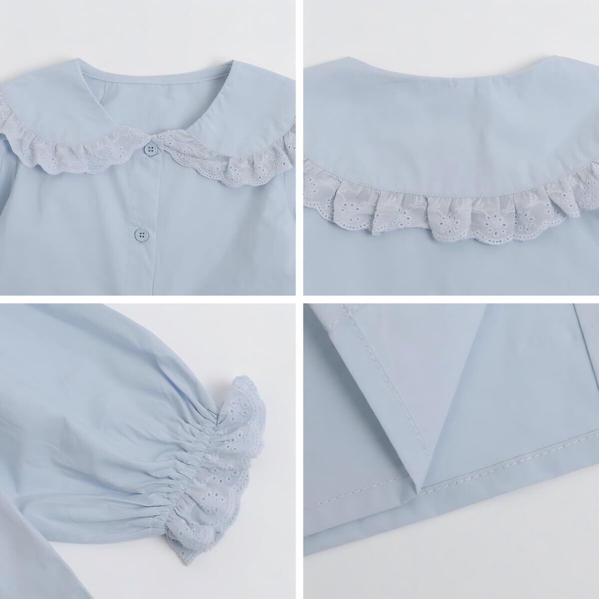 【フリル】袖口と襟元にはフリルとレースがついており、可愛らしさがアップしています。