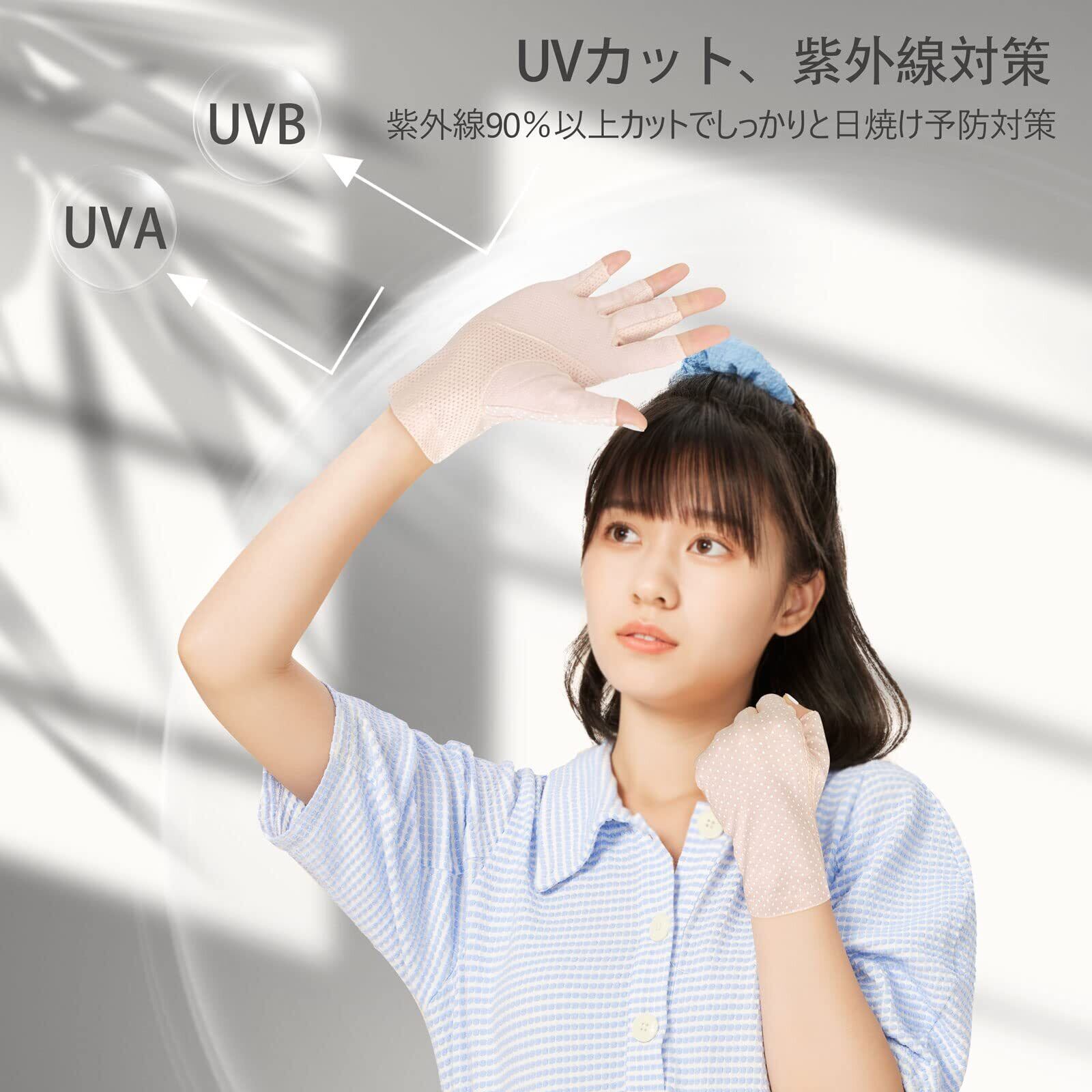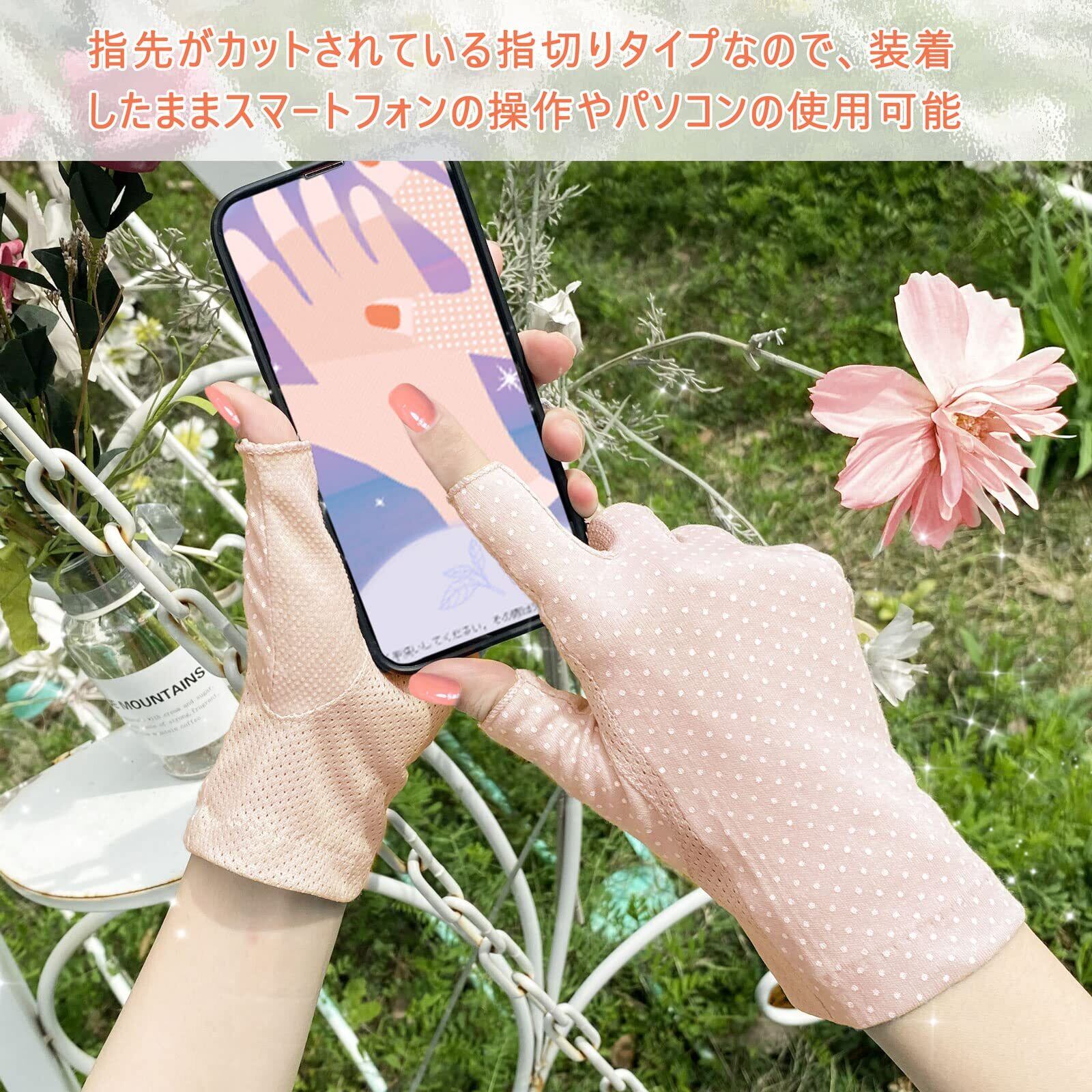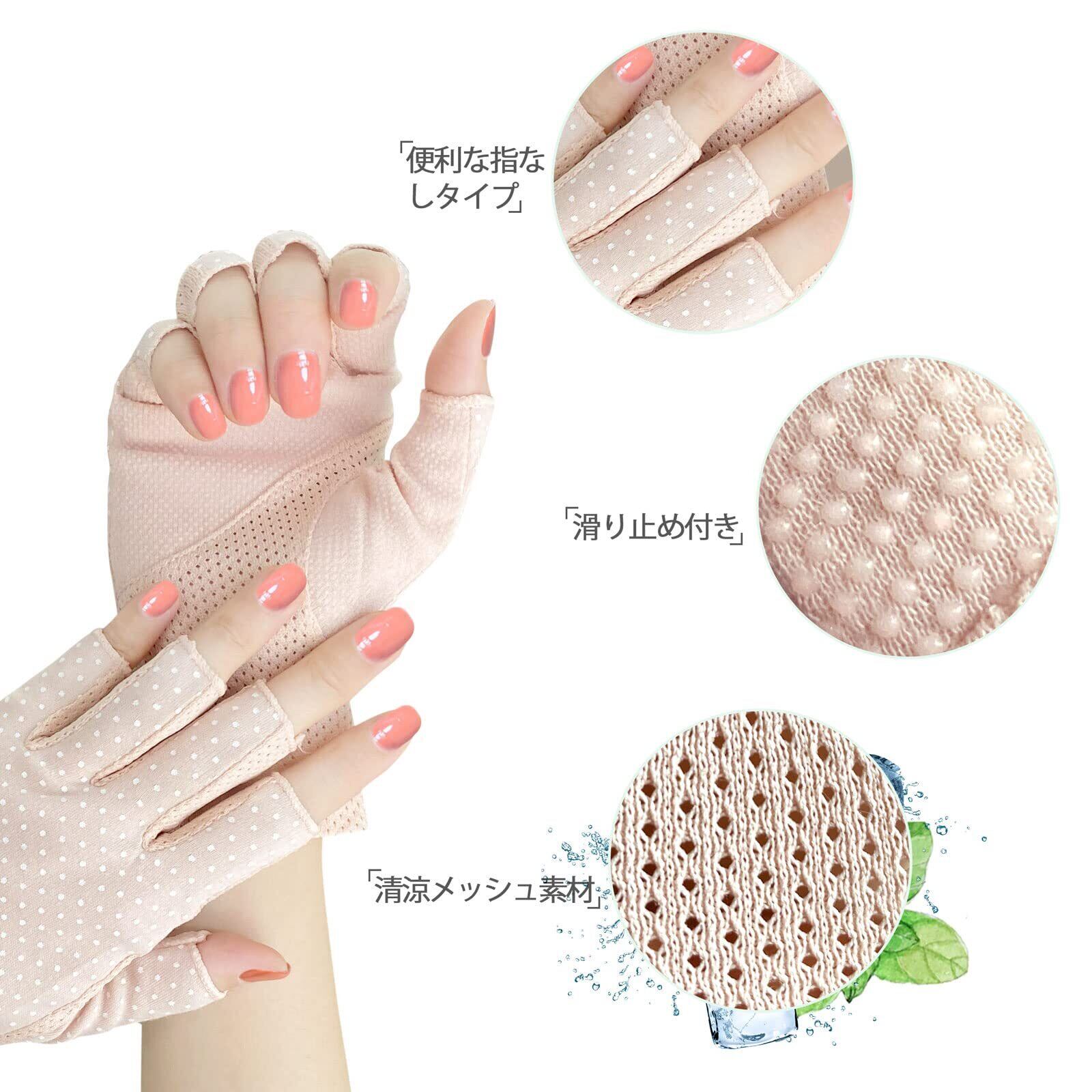 [夢の物] 清涼uvカット手袋 指なし レディース スマホ対応 清涼メッシュ 紫外線対策 日焼け止め 滑り止め付き 通勤 運転用 自動車 春夏用 薄手