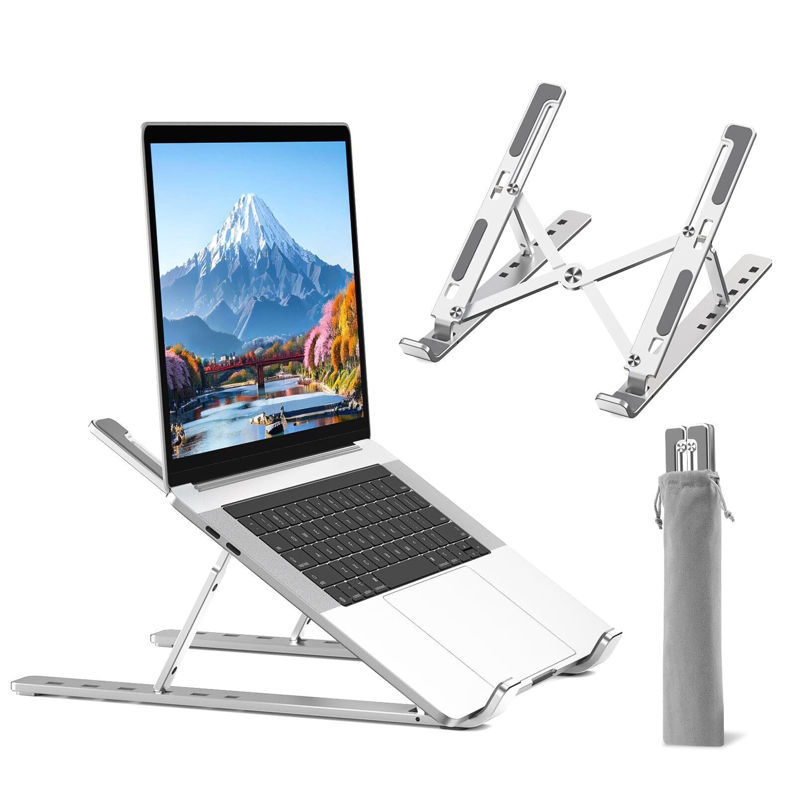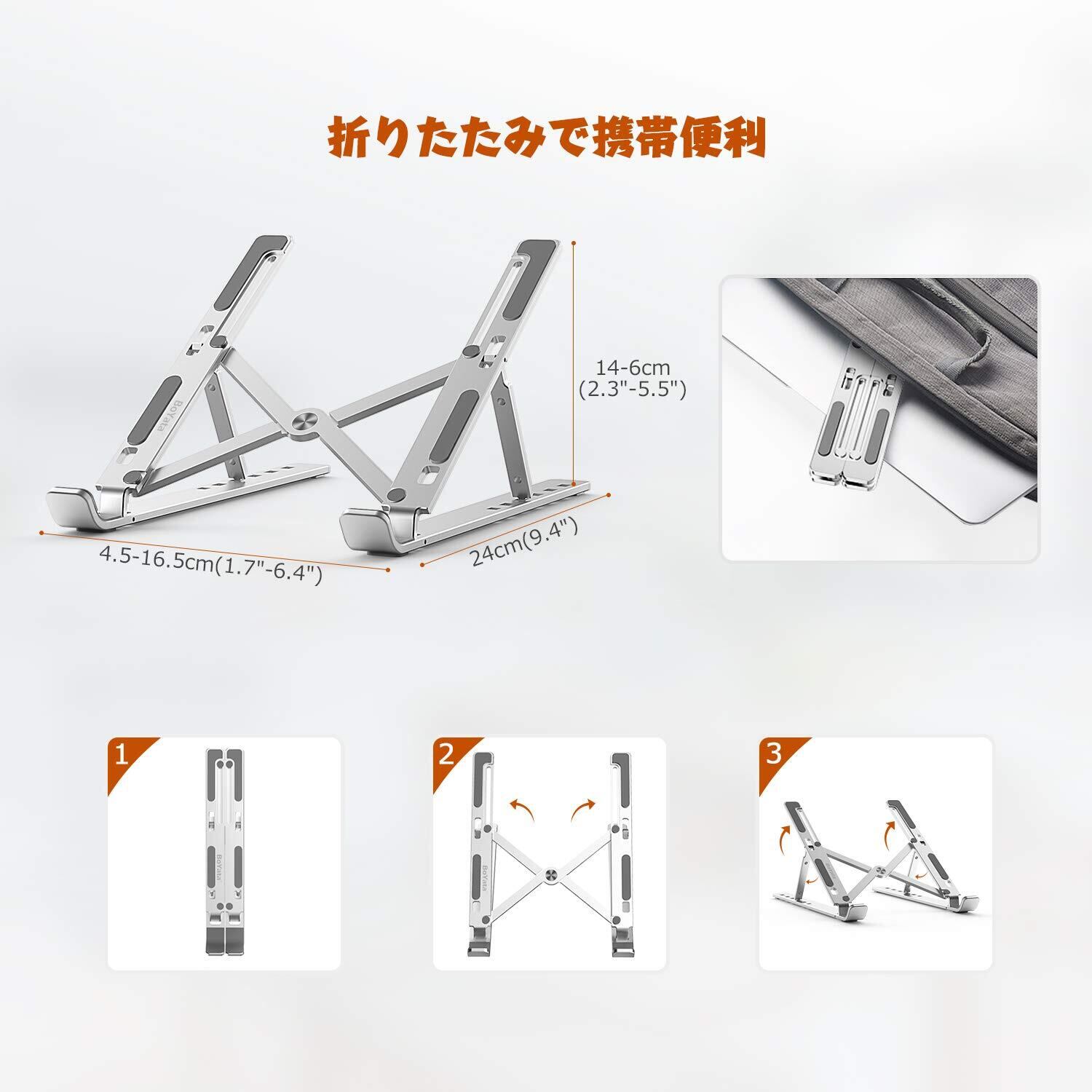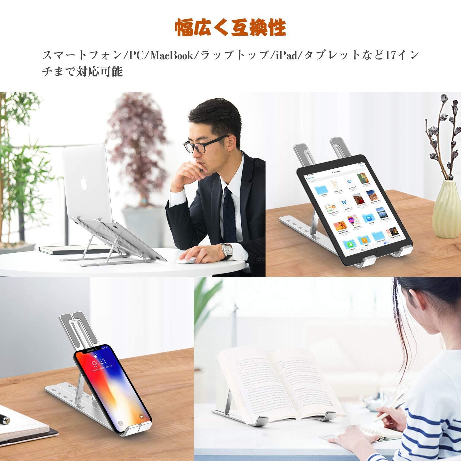BoYata ノートパソコン スタンド iPadスタンド 折りたたみ式 6段階調節可能 軽量 放熱 アルミ合金製 PCタブレット 15.6インチまでデバイスに対応 在宅/出勤勤務 収納袋付き シルバー