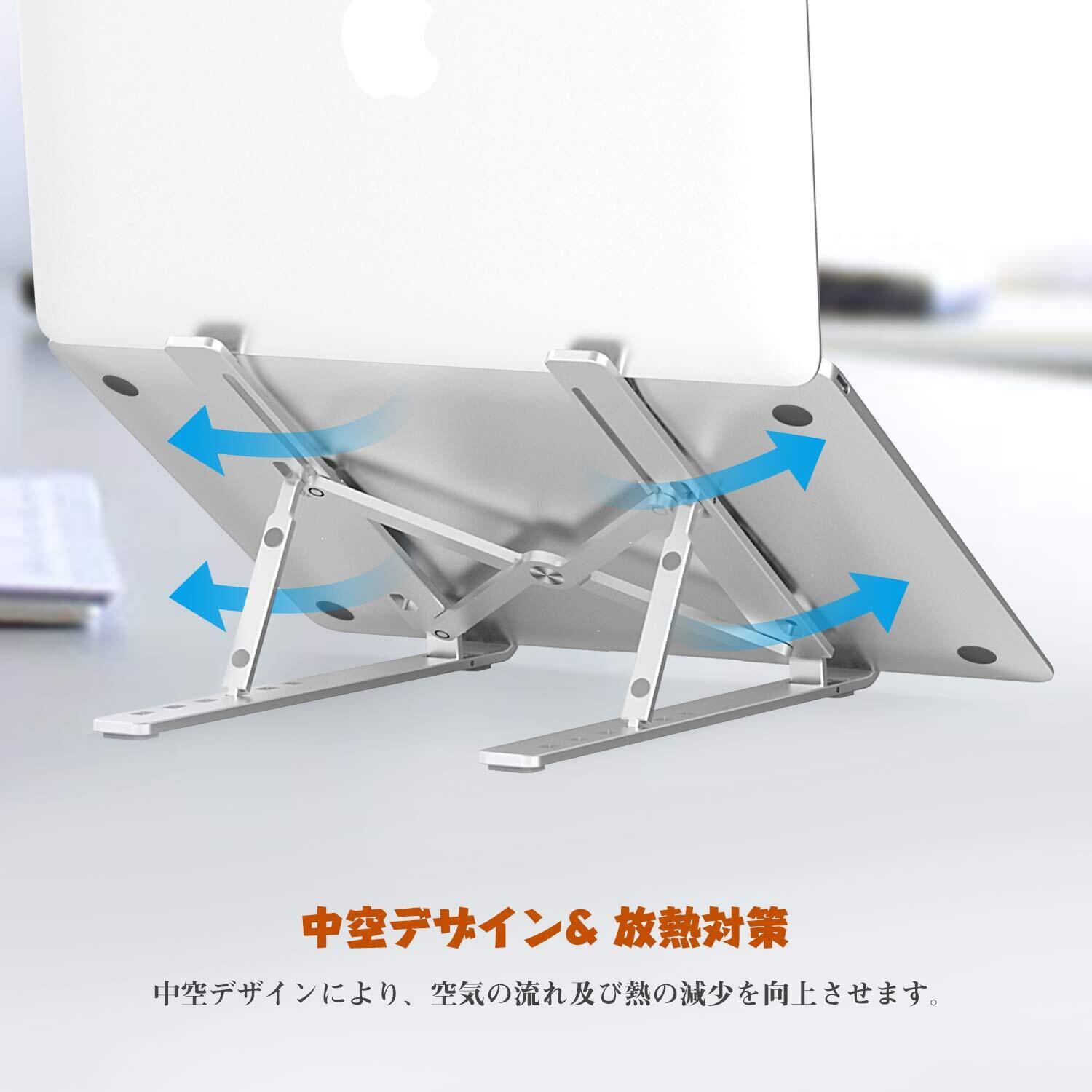 【滑り止め&安定性抜群】複数の滑り止めシリコンパットはスタンドの上面や裏面に付いているので、摩擦力が大きくなり、ノートパソコンはズレること心配無し。美しさと強さを兼ね備えているアルミを採用し、三角形の構造で安定性より抜群です。耐荷重は20KGで、様々なノートパソコン・タブレットの重量にも耐えられます。