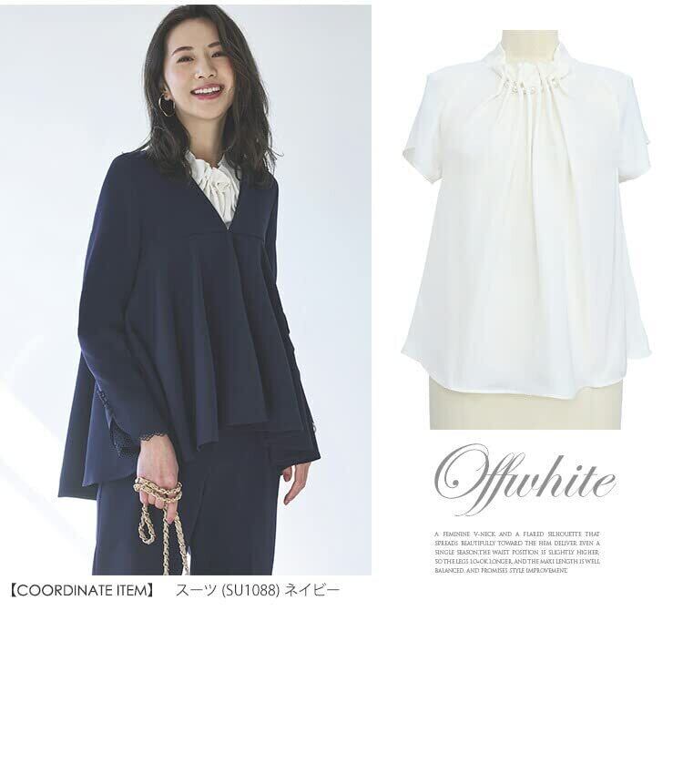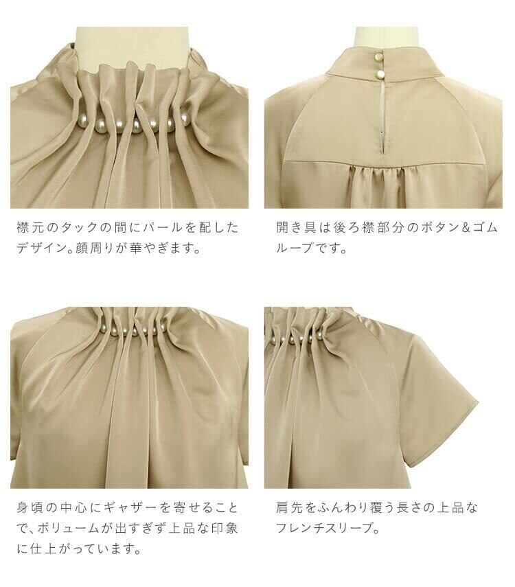 [ルイ ルエ ブティック] ウエーブ タック パール ブラウス レディース ミセス OL ママ トップス スーツ シャツ インナー 半袖 フォーマル カジュアル 大きいサイズ ビジネス オフィス 通勤 セレモニー 入学式 卒業式