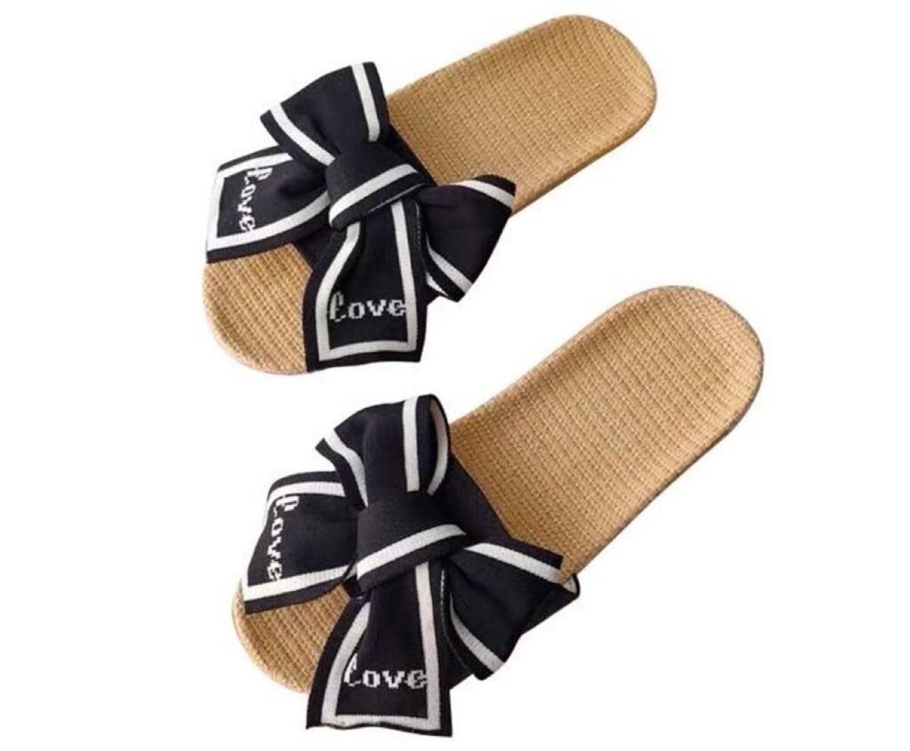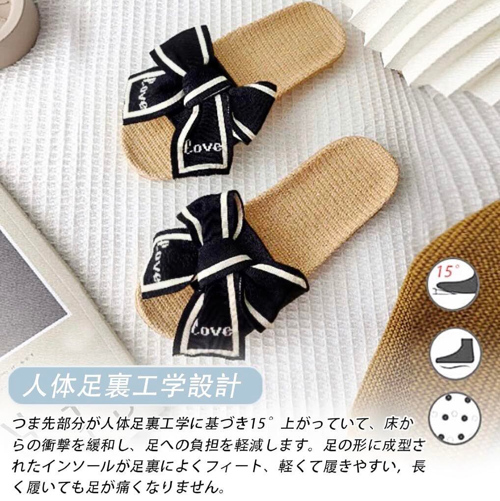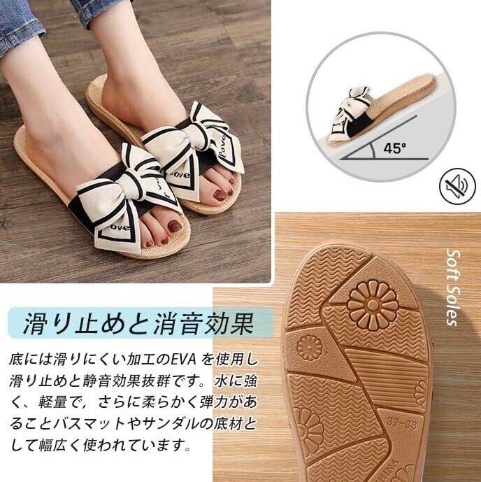 [Roosio] スリッパ レディース 麻 室内 夏用 洗える ルームシューズ 前開き おしゃれ サンダル レディース リボン 可愛い 通気吸汗 涼し サラサラ 快適 静音軽量 滑り止め ルームスリッパ リネン 履きやすい
