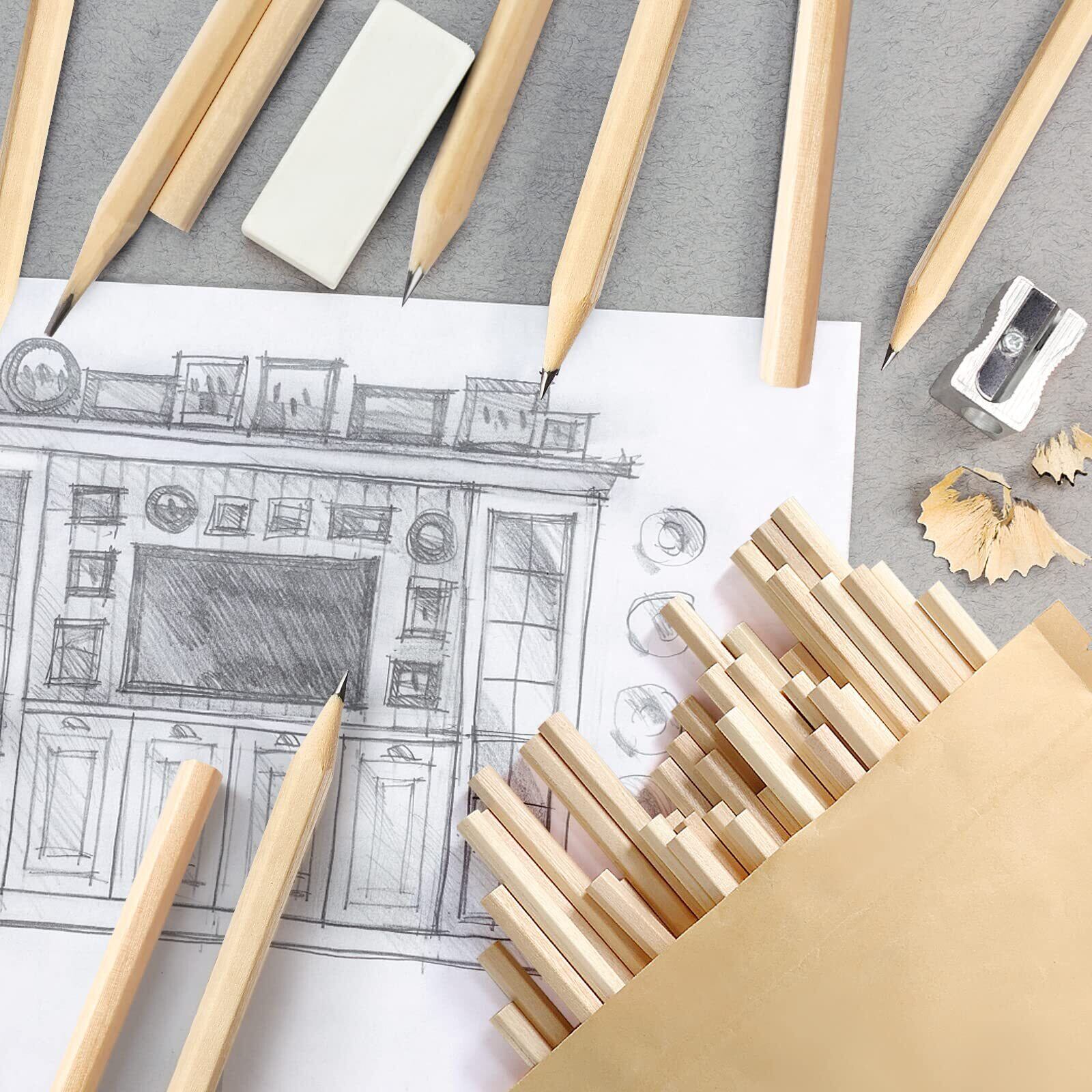 80本セット HB 鉛筆 かきかた wewink plus 原木 六角軸 スケッチ 受験用鉛筆 無地、入園、入学、メモ、試験用 ペンシル デッサンえんぴつ 文房具用品に(ロゴなし)