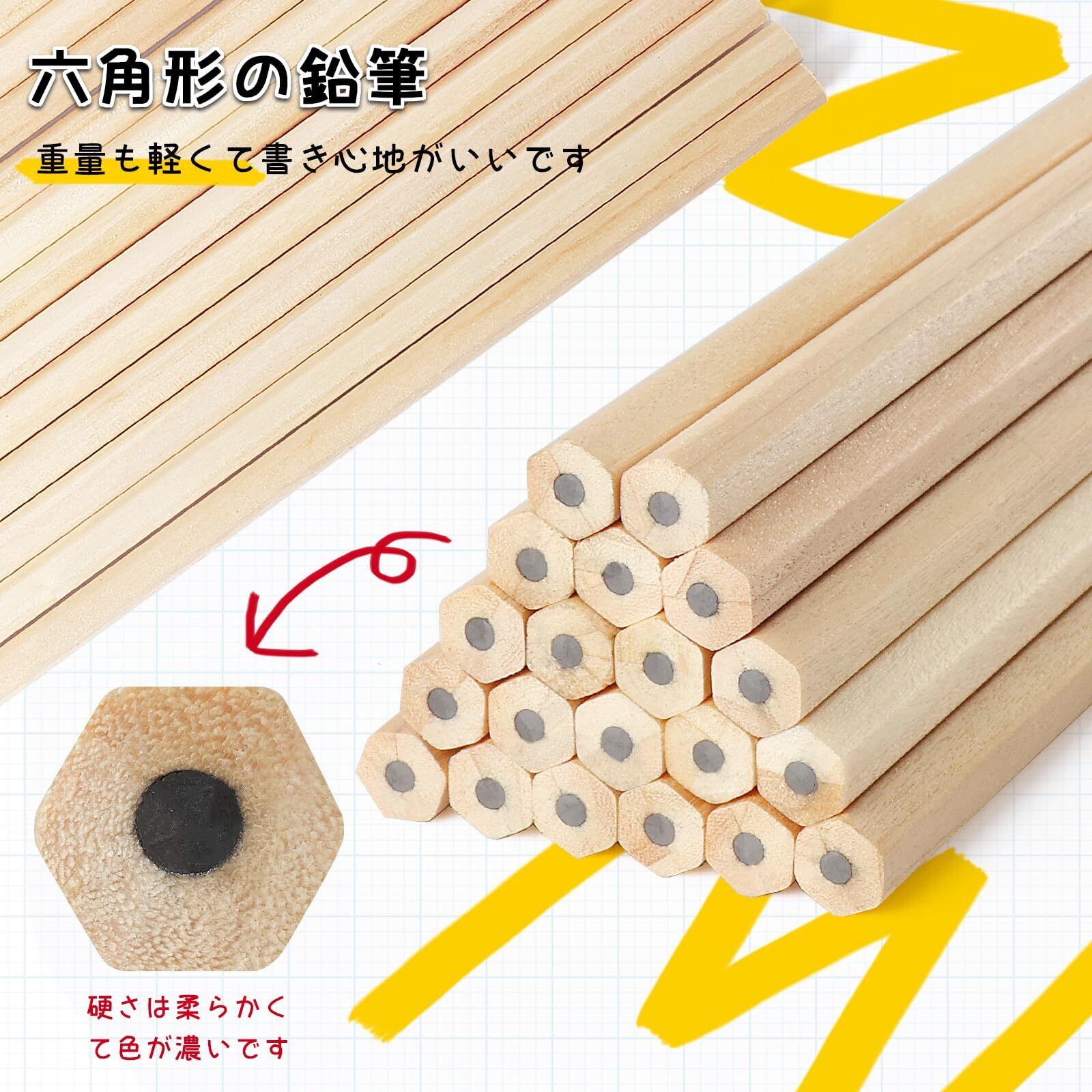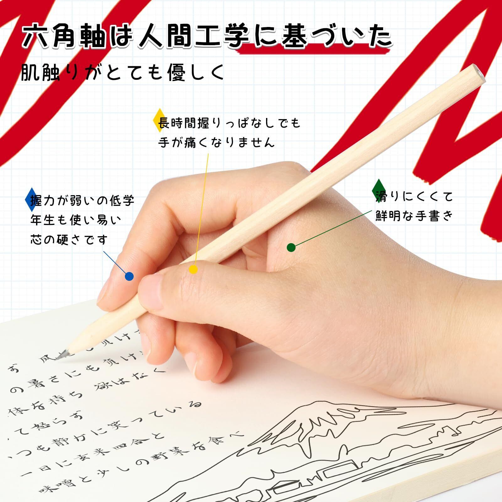 【優しい設計】六角軸のデザインは、人間工学の原理に合わせて、長い時間に使っても疲れません。鉛筆は芯がHBで、芯がハードで色がちょっと薄いです。原木材料で環境には無毒無害で、子供にも安全でご安心してください