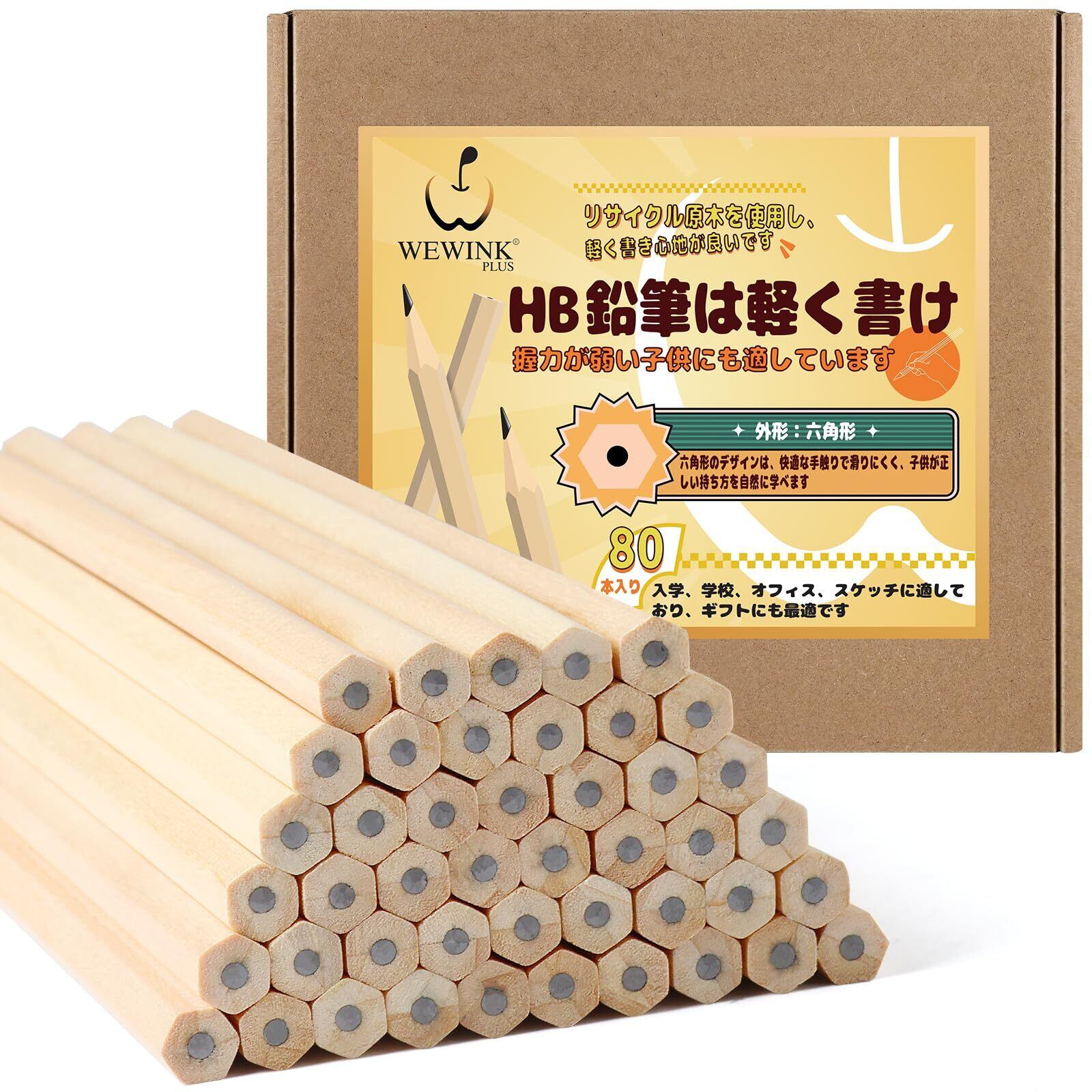 【新着商品】80本セット HB 鉛筆 かきかた wewink plus 原木 六角軸 スケッチ 受験用鉛筆 無地、入園、入学、メモ、試験用 ペンシル デッサンえんぴつ 文房具用品に(ロゴなし)