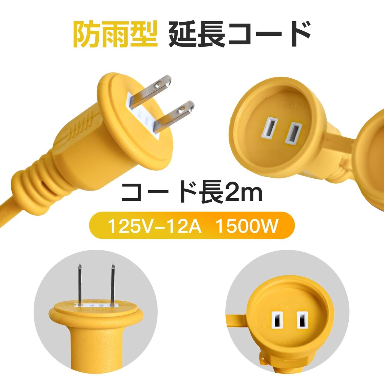 延長コード 防雨型 防水 屋外 PSE認証済 延長コード 2m 3m 5m 10m選択可能 (2m) イエロー