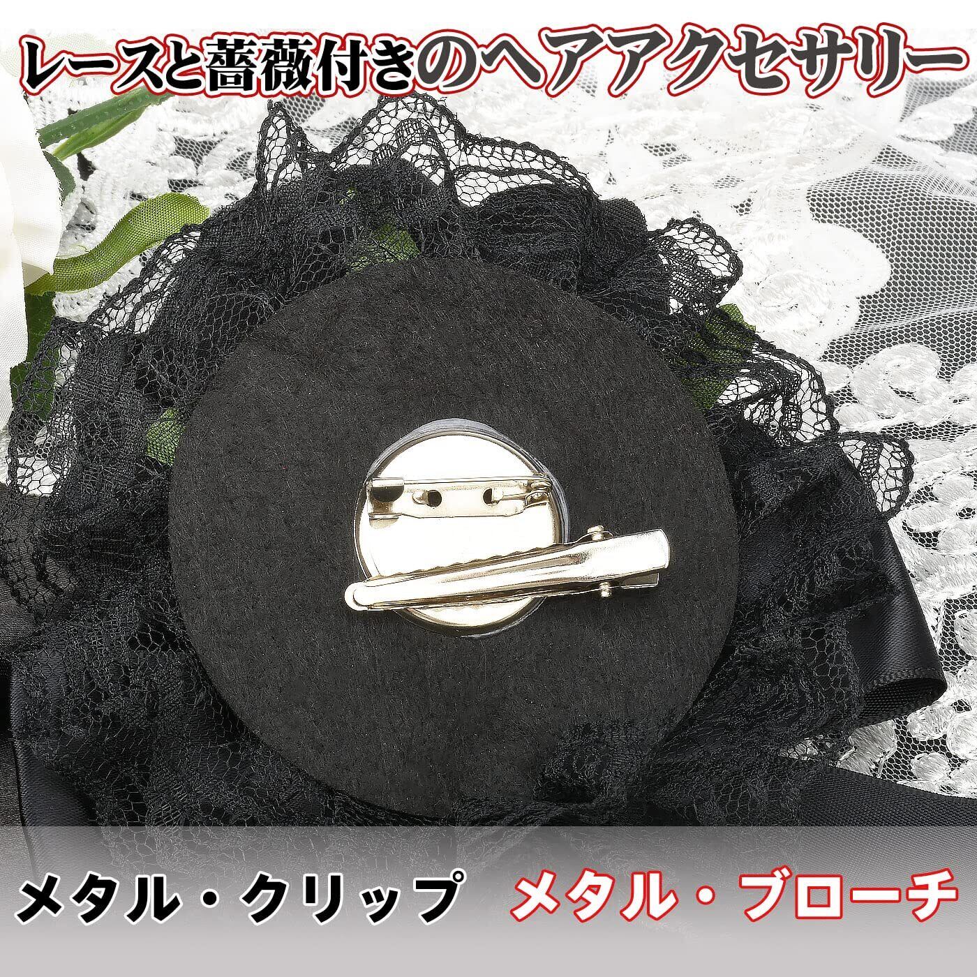 【在庫セール】MM&UU ヘッドドレス ロリータ 薔薇 バラ ヘアアクセサリー ゴシック ゴスロリ 髪飾り クリップ ブローチ 2in1 披露宴 二次会 発表会 葬式 宴会 可愛い 母の日 ギフト 赤